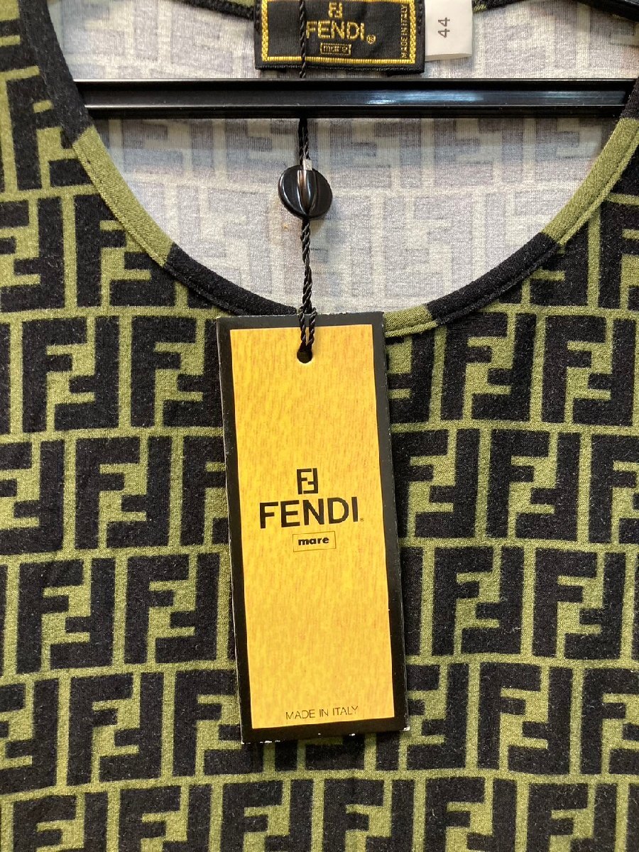 ◆未使用 保管品 FENDI フェンディ Tシャツ サイズ44 Lサイズ ズッカ柄 グリーン系◆15820★