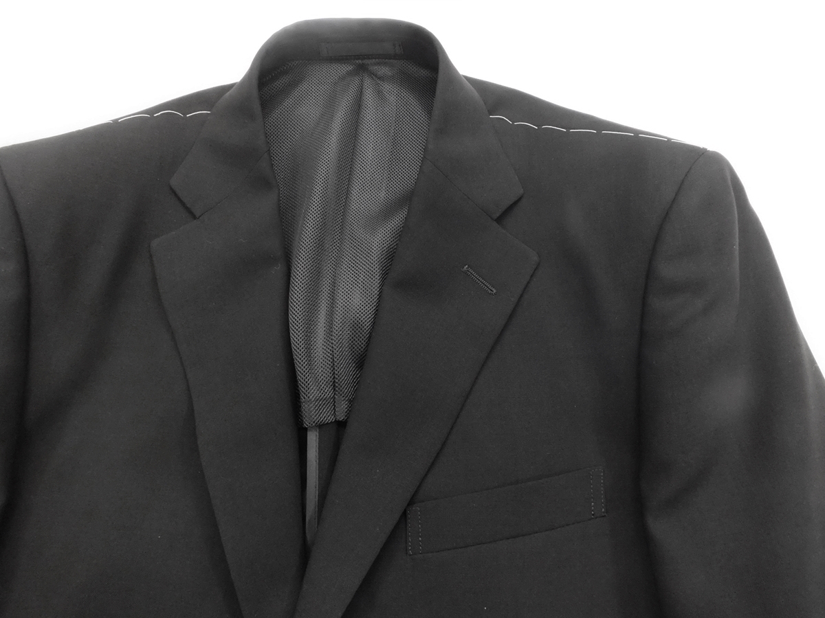 【特色】 ・長く着用できるフル年齢向きで少しゆとりが有るシルエット ・シャリ感のある軽くて涼し素材 ・1枚仕立てで暑いシーズンに快適 ・メッシュ裏採用で通風性抜群 ・便利な携帯電話・メガネポケットあり ・パンツは体形の変化に対応しやすいアジャスター機能付きで楽々 ・本台場パイピング付きの高級仕立て 【上着】2釦シングル・背抜き仕立て・センターベンツ 【パンツ】ワンタッグ・アジャスター機能付き(前後に約10cm調節可能) 【サイズ】”Y8”(胸囲98cm-ウエスト82cm-身長185cm) 【表素材】毛85/ポリエステル15 ウルトラブラック(濃染加工)黒の極限を追求 【裏素材】ポリエステル100% 抗菌防臭加工 【希望小売価格】本体価格68,000円+税 【縫製】日本のアパレルメーカーの企画により中国で生産 詳細寸法 Y8 三元表示(胸囲98cm-ウエスト82cm-身長185cm) 上着:胸囲113/胴回98/着丈81/肩幅49.6/袖丈64 パンツ:ウエスト82/股上27/股下96/渡り幅34.7/膝幅25.5/裾幅22.5 ◎数字はすべてcmになります。 | ||||