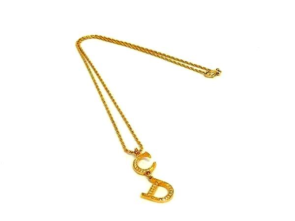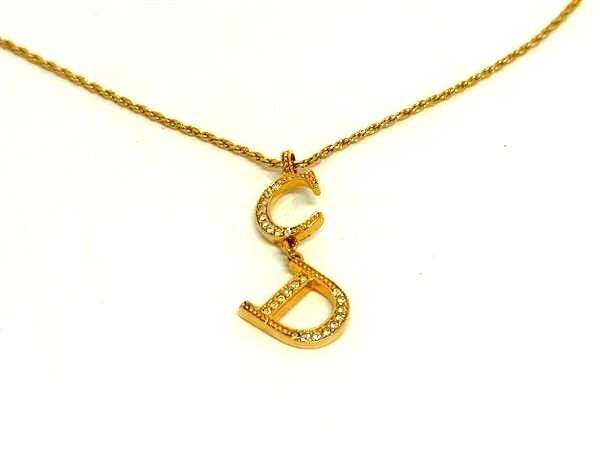 1円 ■美品■ DIOR ディオール ラインストーン ネックレス ペンダント アクセサリー ゴールド系×シルバー系 FV1407