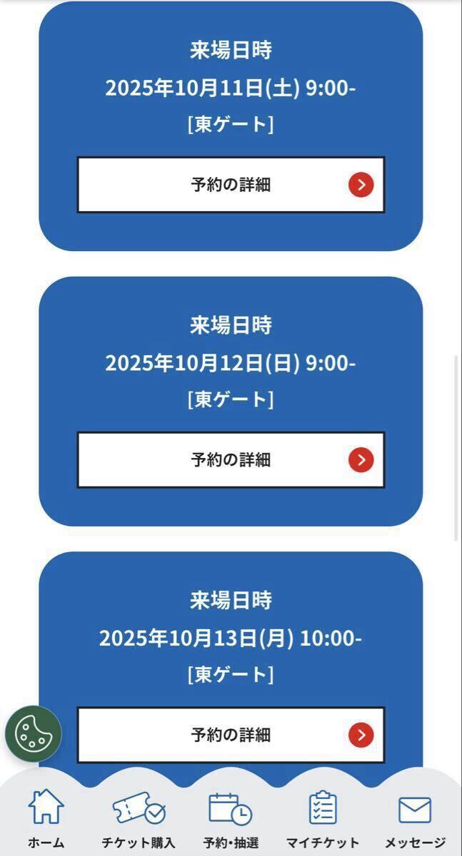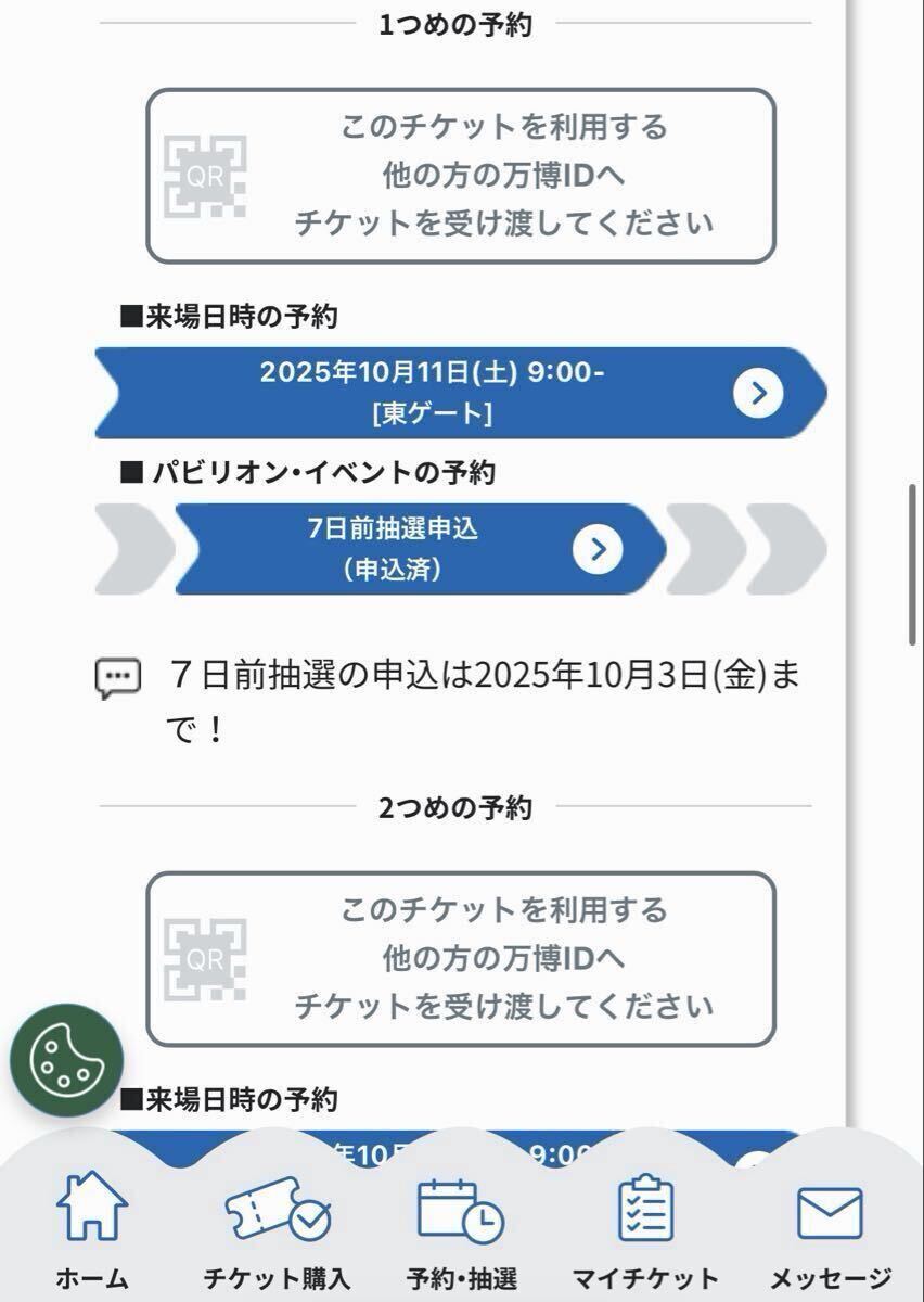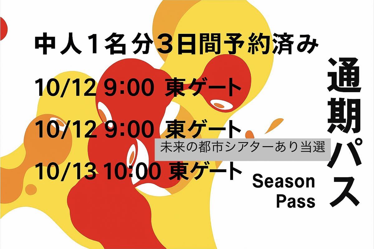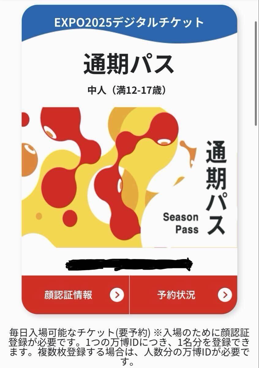 万博の通期パスで閉幕前3日分予約済みのチケット中人1名分になります。