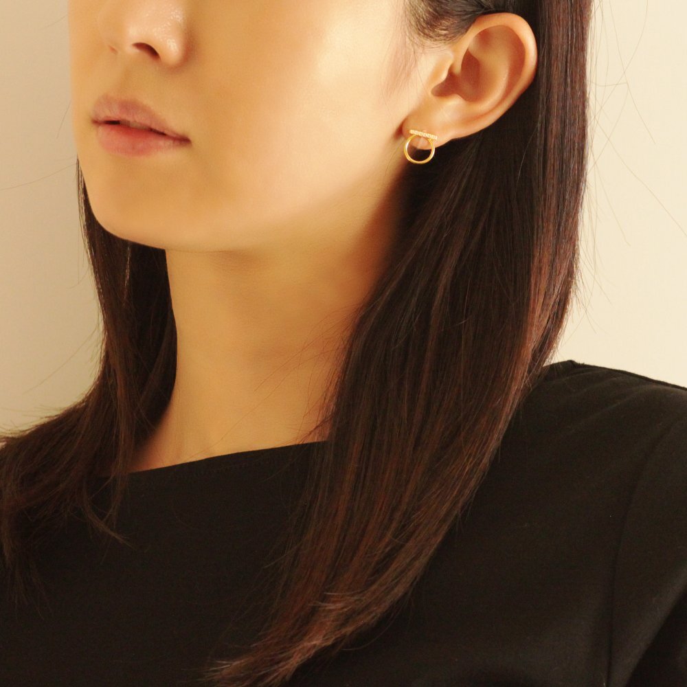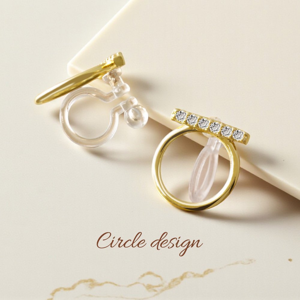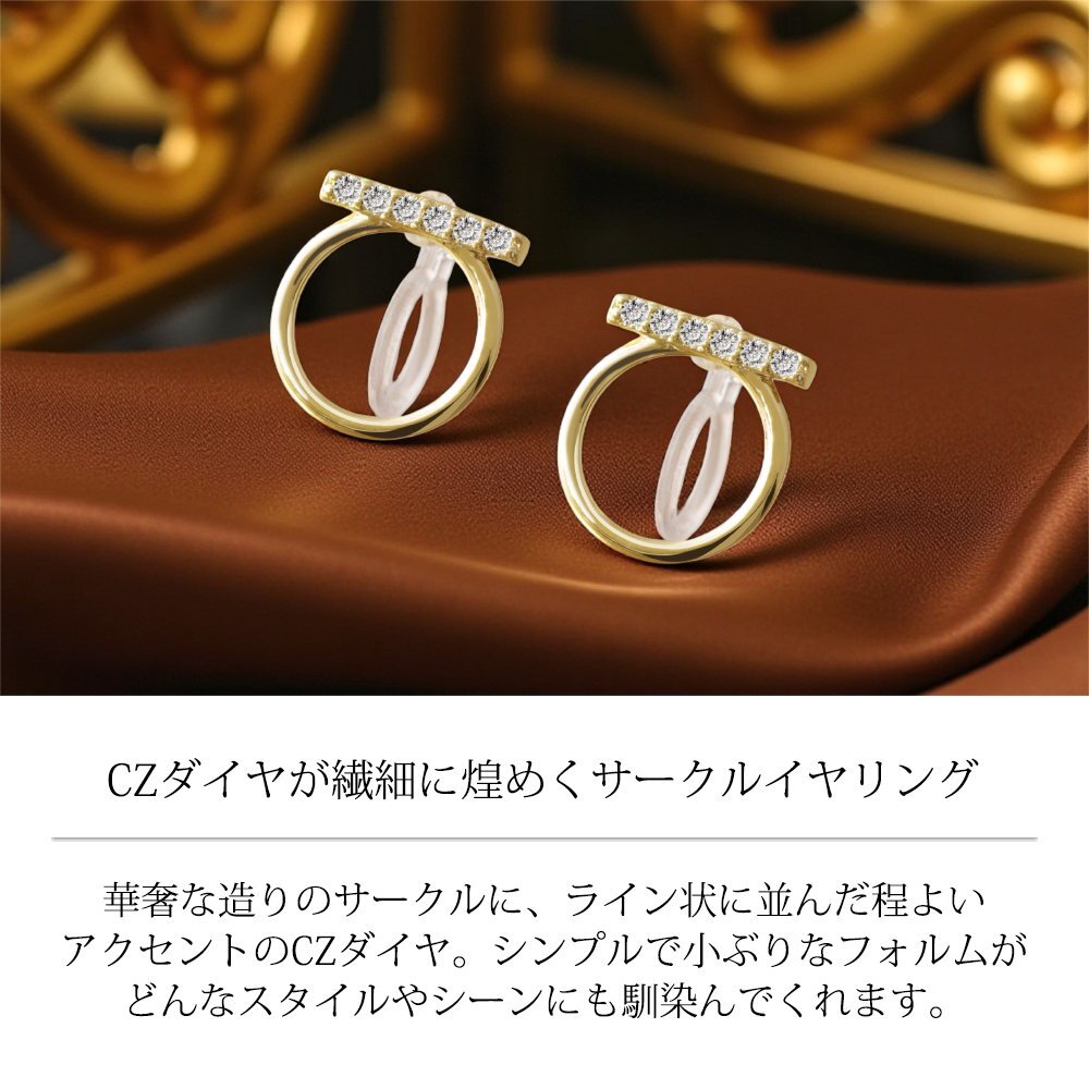 新品/イヤリング/K18GP/レディース/サークル/ラインバー/ゴールド/18金/18kコーティング/ピアス見え/樹脂/金属アレルギー/ダイヤ/CZ