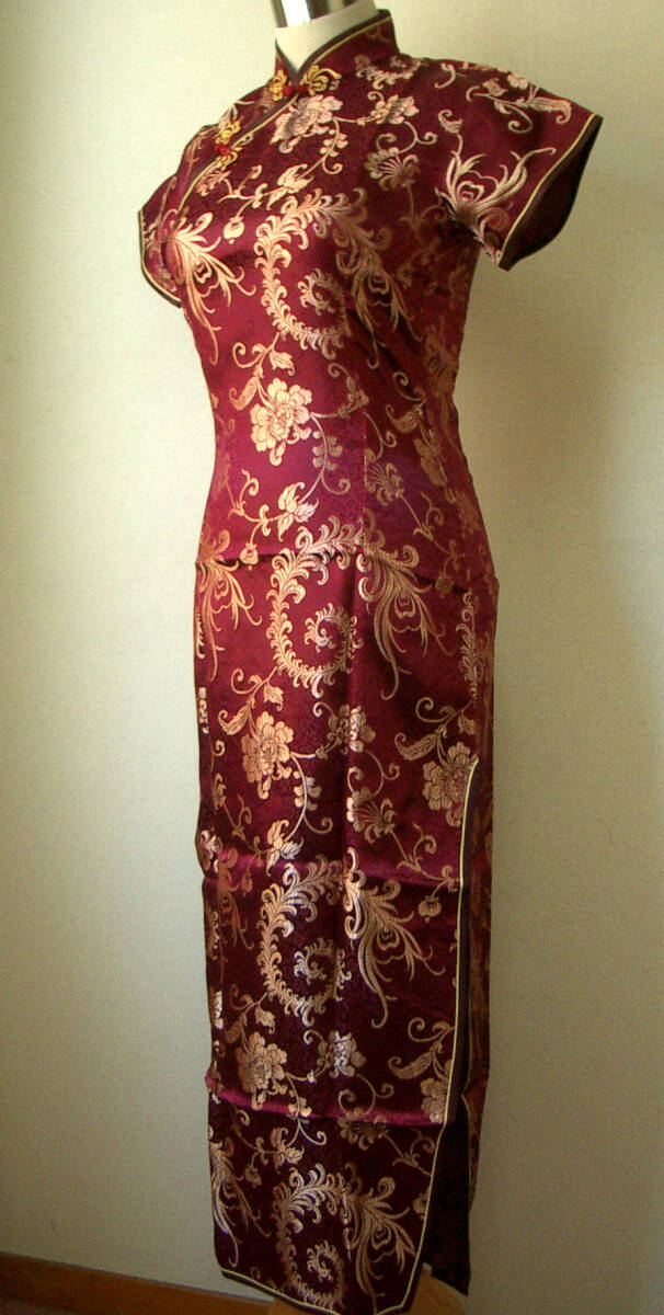 ワインレッド金花模様のチャイナドレス 女性Lサイズ 新品 NO83 送料無料!