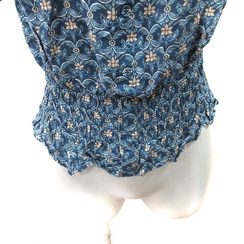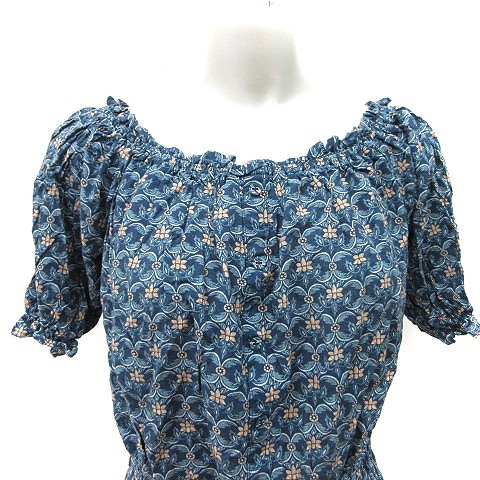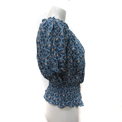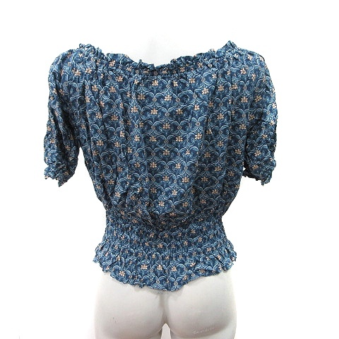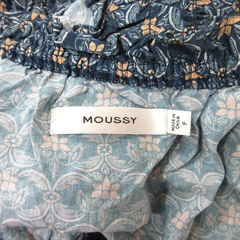 マウジー MOUSSY ブラウス プルオーバー ペプラム 半袖 総柄 F 紺 ネイビー /YI レディース
