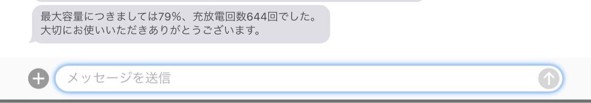 ・Appleサポートに確認しましたが、バッテリー最大容量は79%、充放電回数644回になります。(写真参照)