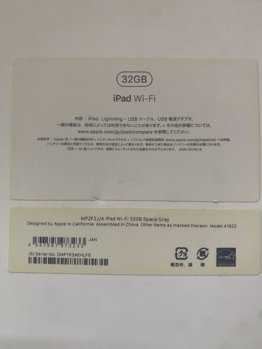 Apple iPad 第5世代 スペースグレイ Wi-Fiモデル 32GB A1822 MP2F2J/A