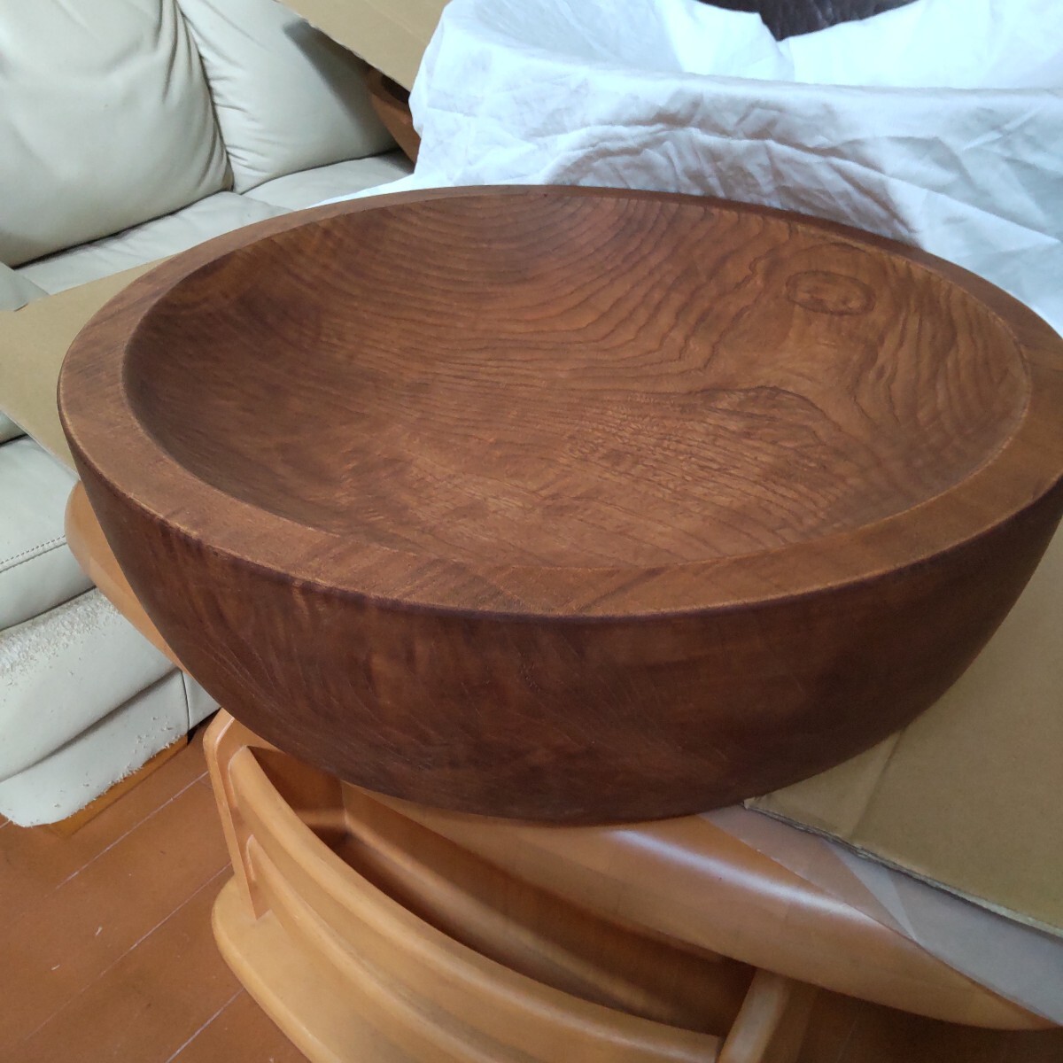 木鉢 こね鉢  51㎝  くり抜き捏ね鉢  麺 蕎麦打ち 極厚 内面は浅め  素人計測で深いところで8㎝ぐらいです。
