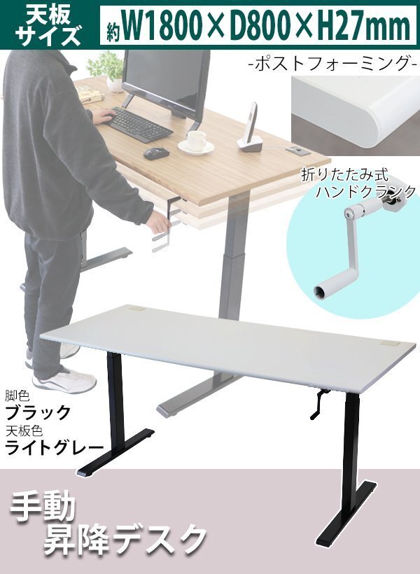 商品名 | 送料無料 昇降デスク 手動 W1800×D800×H735〜1185mm 耐荷重約70kg(脚部) スタンディングデスク 上下昇降デスク 手動昇降 上下昇降 昇降デスク 高さ 調整 エルゴノミクス オフィスデスク 昇降式デスク 手動 昇降 昇降テーブル 昇降式テーブル 手動デスク hk01180stl |