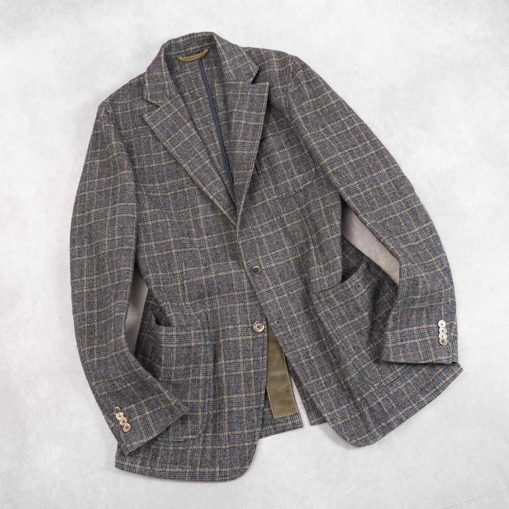 都会派デザイン『SHIPS』テーラードジャケット Mサイズ グレーチェック柄 日本製 シップス メンズ 管理10227