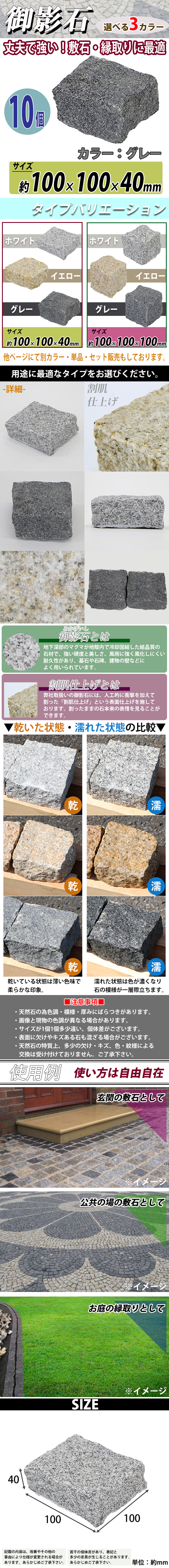 | 商品名 | 送料無料 御影石 ピンコロ石 天然 約幅100×奥行100×高さ40mm 割肌 10個 セット ミカゲ ピンコロ 敷石 敷材 石材 床材 天然石 花崗岩 花壇 縁 庭 駐車場 玄関 置き石 仕切り 庭石 半丁掛け クォーター スクエア DIY グレー mikage1010410p |
