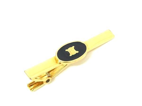 ■美品■ CELINE セリーヌ マカダム ネクタイピン タイクリップ アクセサリー ビジネス 紳士 メンズ ゴールド系×ブラック系 DK4477