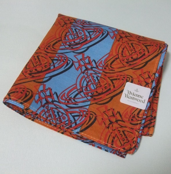 Vivienne Westwood ヴィヴィアン・ウエストウッド ハンカチ 未使用品 オーブ総柄 オレンジ系 百貨店