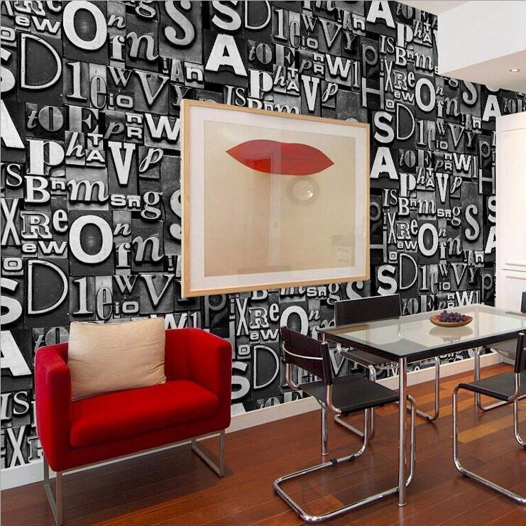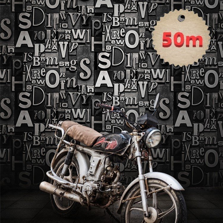 3D ウォールペーパー 【ビンテージロゴ×グレー】 英字 53cm×50m アンティーク DIY のりなし 壁紙 クロス リメイク 欧米