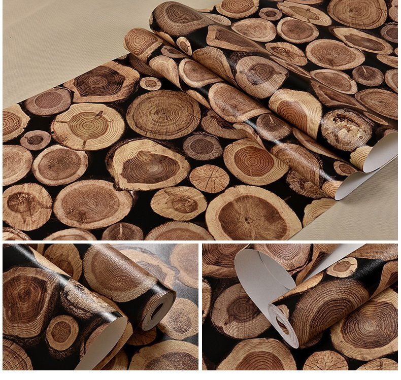 3D ウォールペーパー 【B256 切り株 丸太 赤茶】 木目 53cm×20m 和モダン インテリア DIY のりなし 壁紙 クロス リメイク