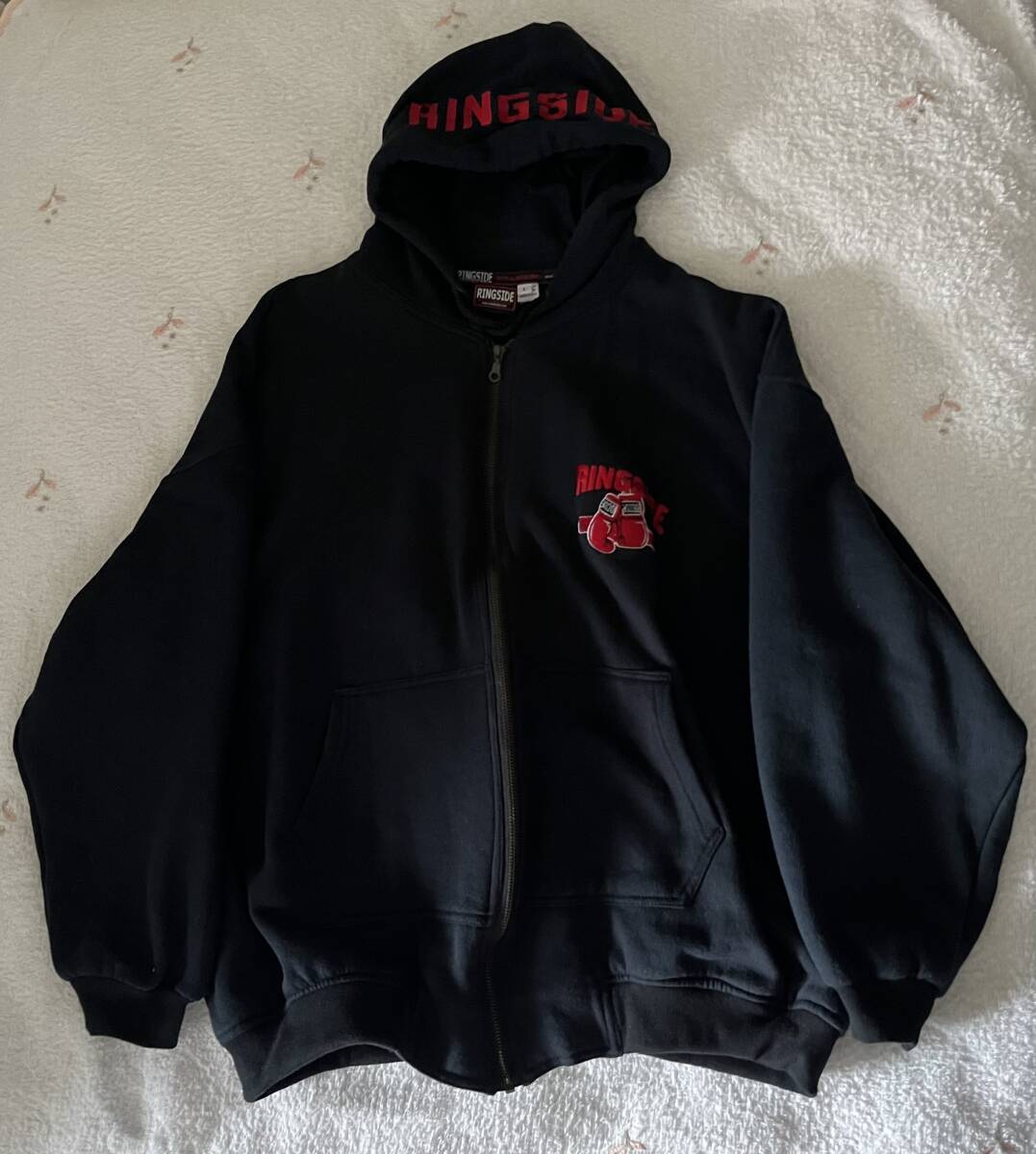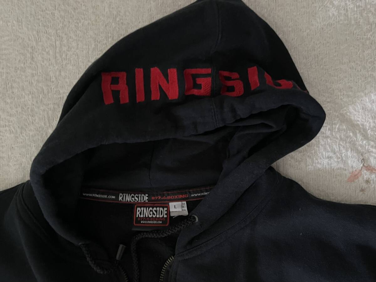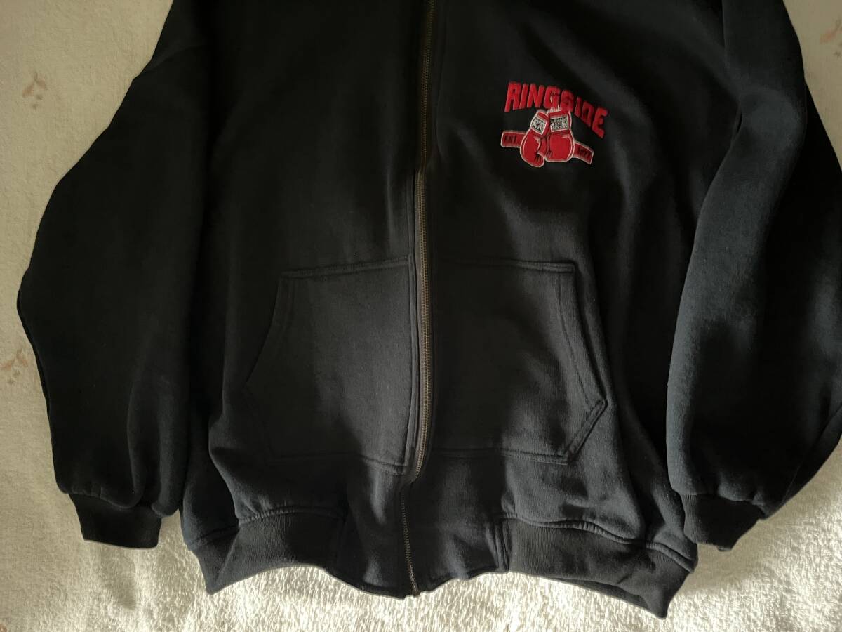 【商品内容】 ボクシング リングサイド スウェットパーカー ブラック(裏起毛)です。当オークションで購入後一度も使用せず自宅保管しておりました。 【サイズ】着丈 : 約64㎝、身幅 : 約61㎝、肩幅 : 約59㎝L(サイズ表記ですがLLに近いです) ※素人採寸なので誤差はご了承願います。 ※詳細は写真をご覧いただき宜しくお願い致します。 ※送料は定形外郵便またはゆうパックで、出来るだけ安価となるよう梱包しお知らせいたします。