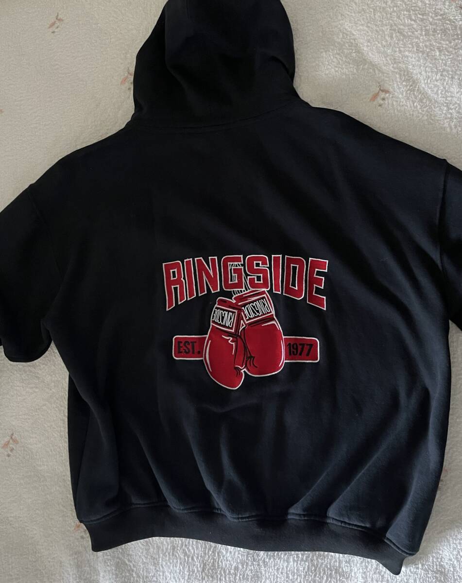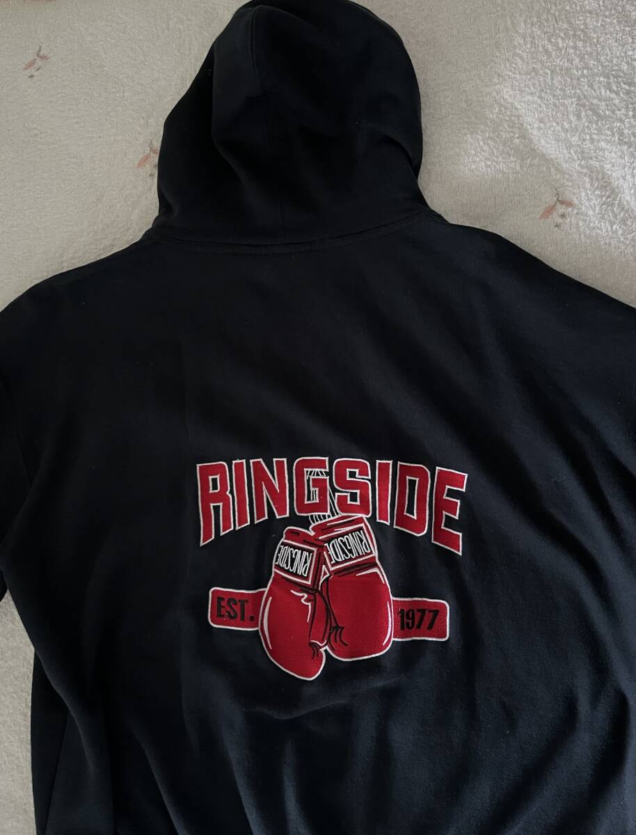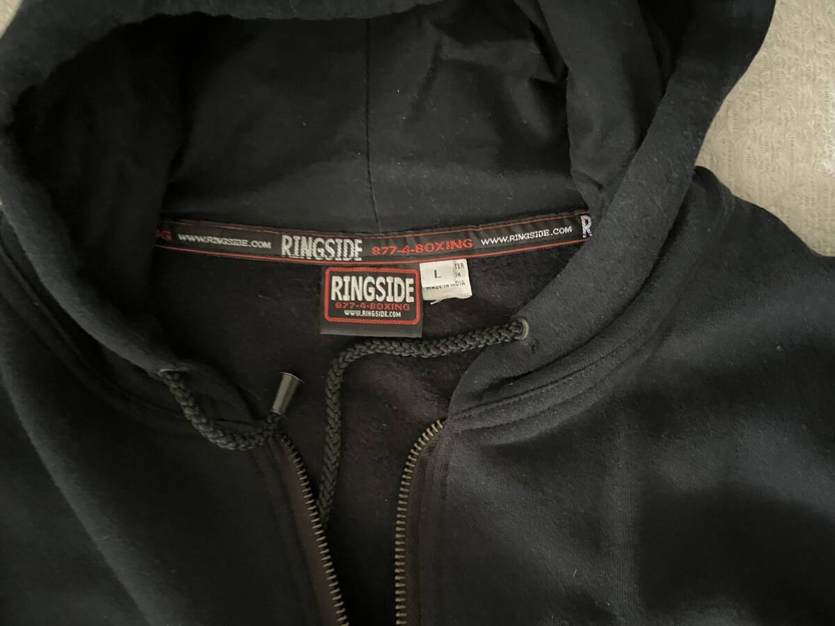 【商品内容】 ボクシング リングサイド スウェットパーカー ブラック(裏起毛)です。当オークションで購入後一度も使用せず自宅保管しておりました。 【サイズ】着丈 : 約64㎝、身幅 : 約61㎝、肩幅 : 約59㎝L(サイズ表記ですがLLに近いです) ※素人採寸なので誤差はご了承願います。 ※詳細は写真をご覧いただき宜しくお願い致します。 ※送料は定形外郵便またはゆうパックで、出来るだけ安価となるよう梱包しお知らせいたします。