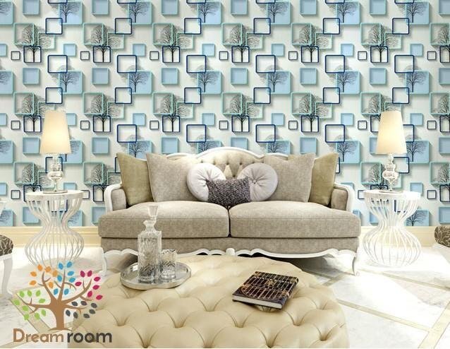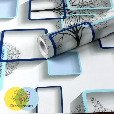 送料込 3D エレガント B197 和柄絵×モダン青 10m ストーン 壁紙 北欧 インテリア はがせるシール DIY ウォールペーパー 糊付き
