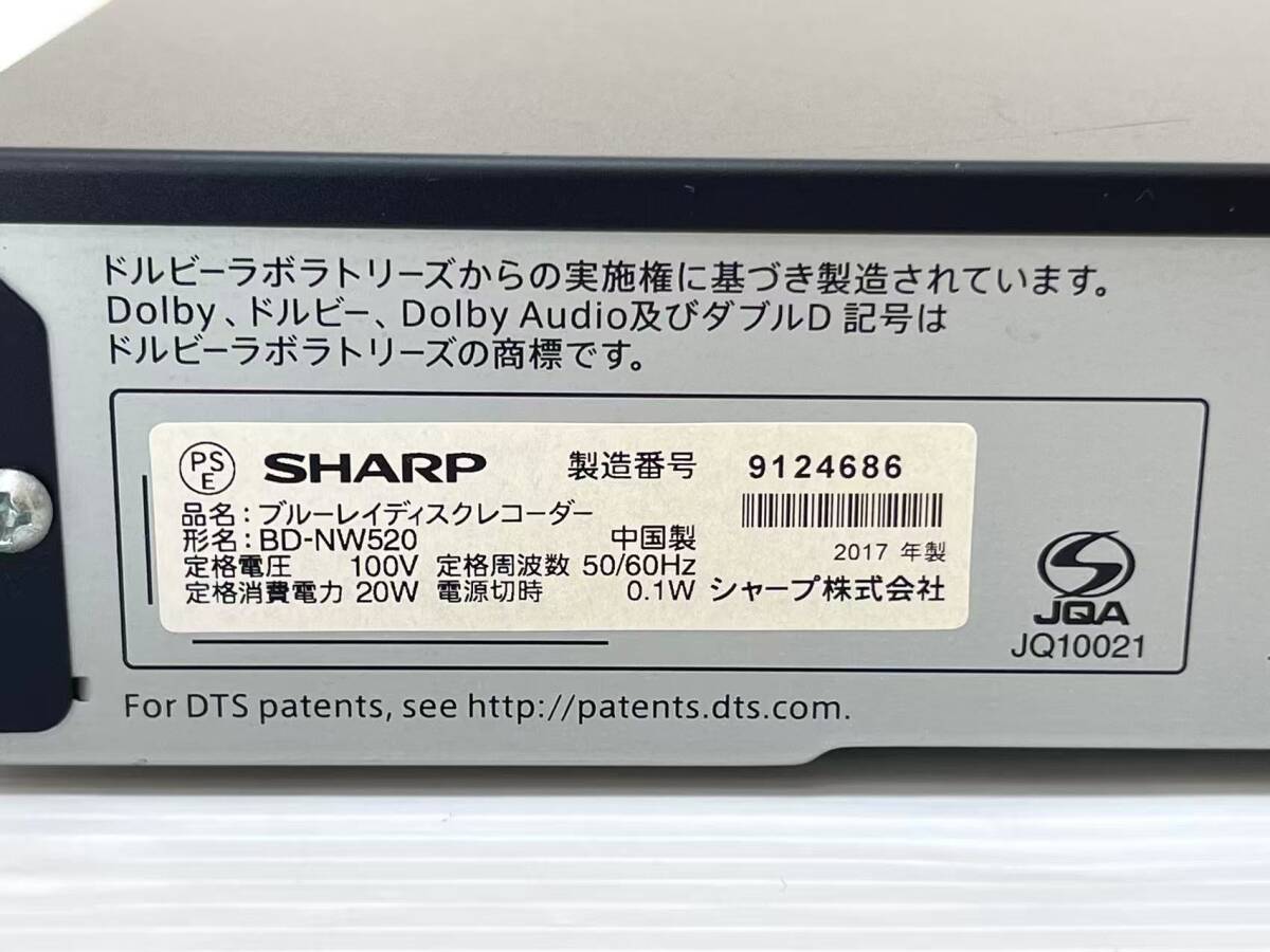 SHARP ブルーレイディスクレコーダー BD-NW520 2017年製 動作確認済み