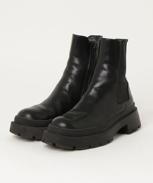 キーワード:ブーツ レディース サイドゴア チャンキーヒール ヒール プレーントゥ ミドル 秋 冬