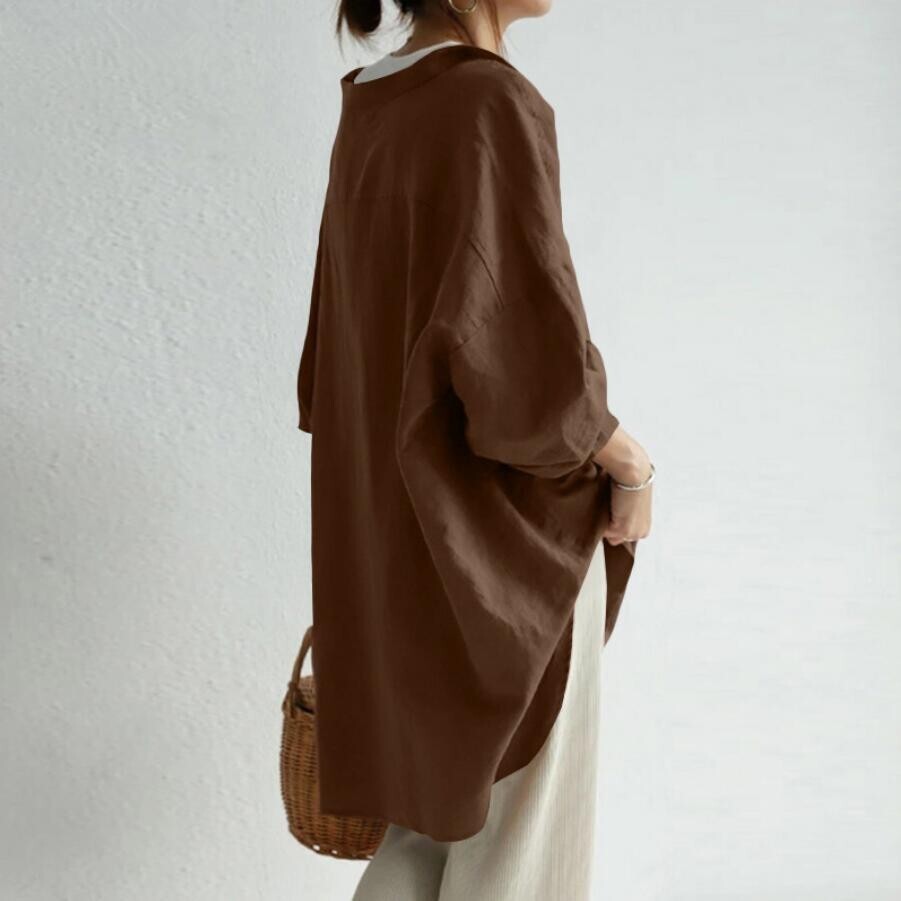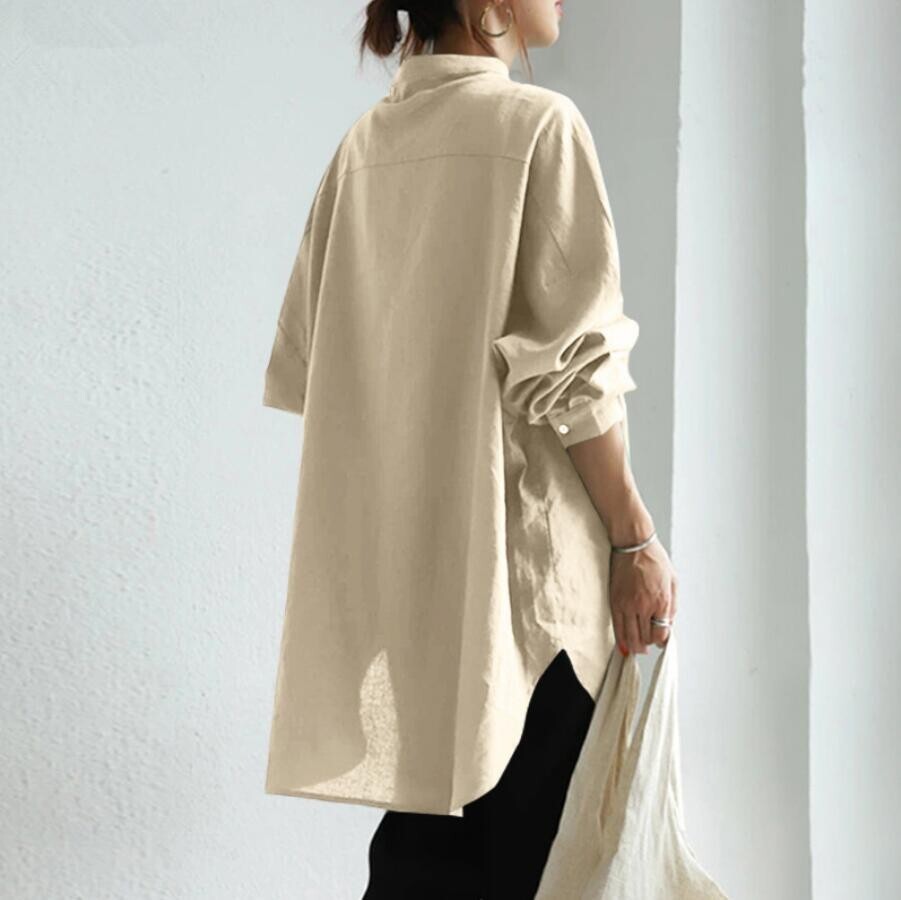 新品 秋 冬 M-3XLサイズ春秋 カジュアル トップス お洒落シック 20304050代 無地 大きいサイズ 長袖 シャツチュニックカーキ
