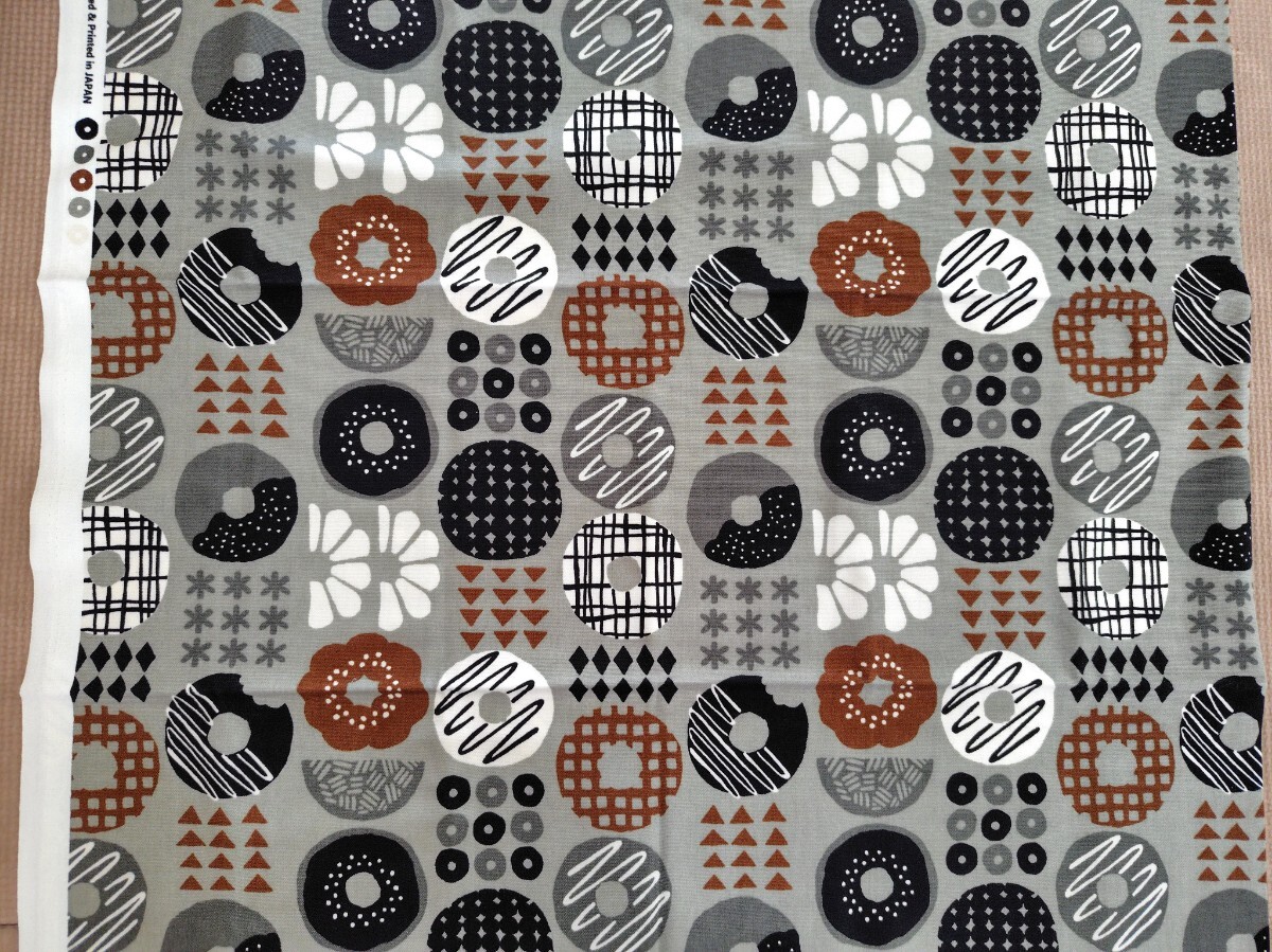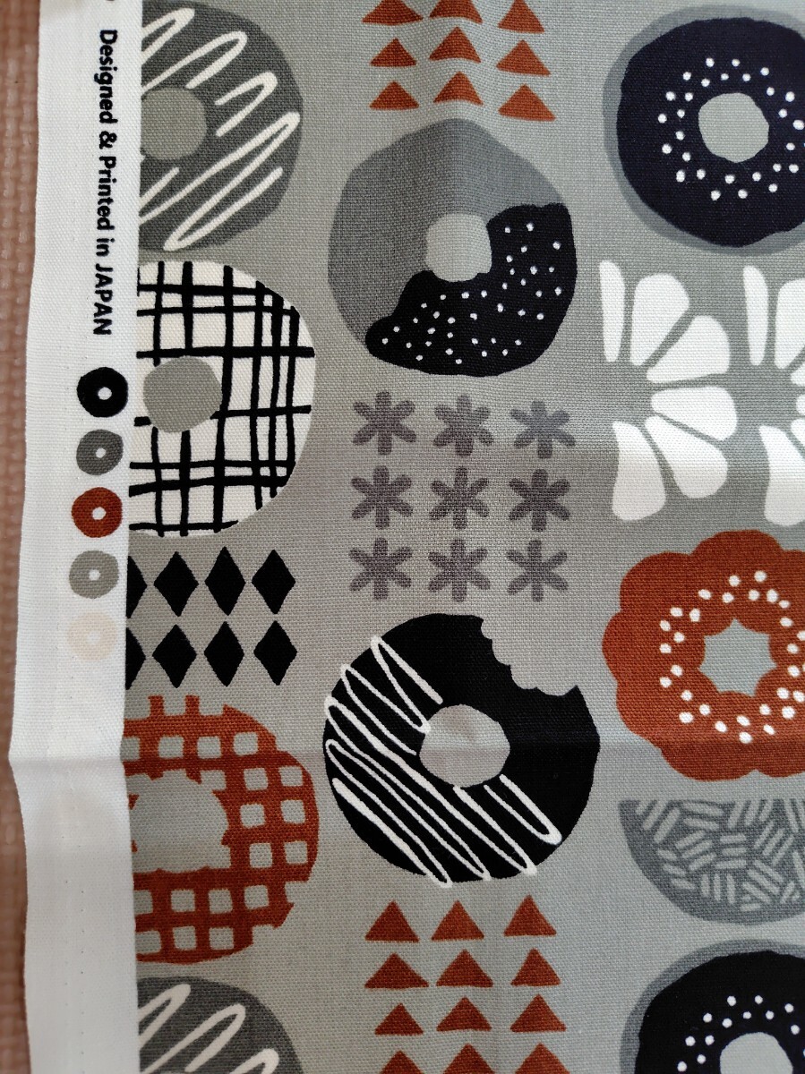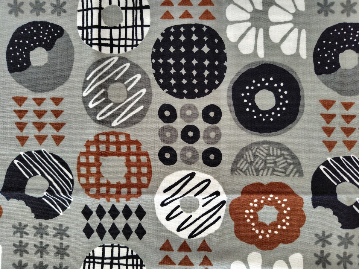柄はグレー地にたくさんの美味しそうなドーナツ。