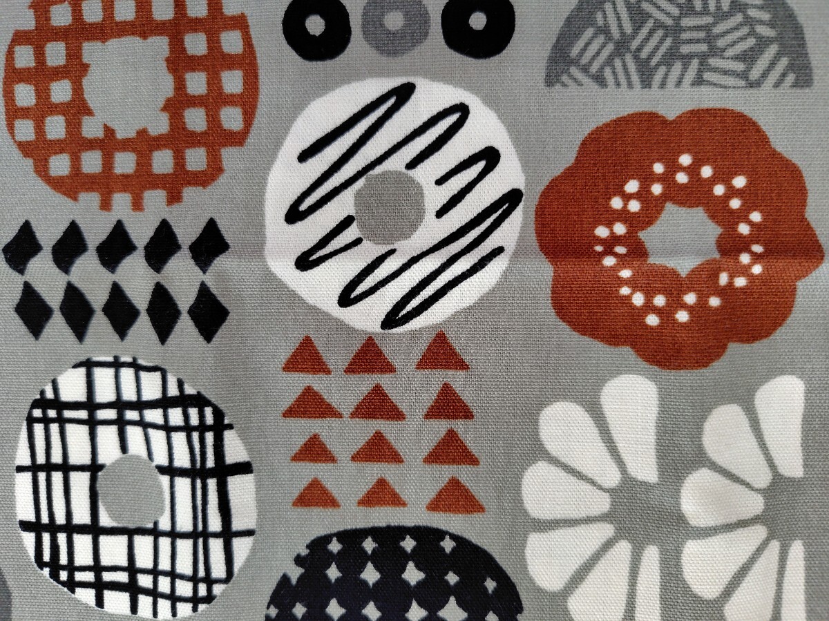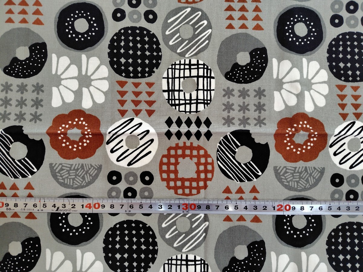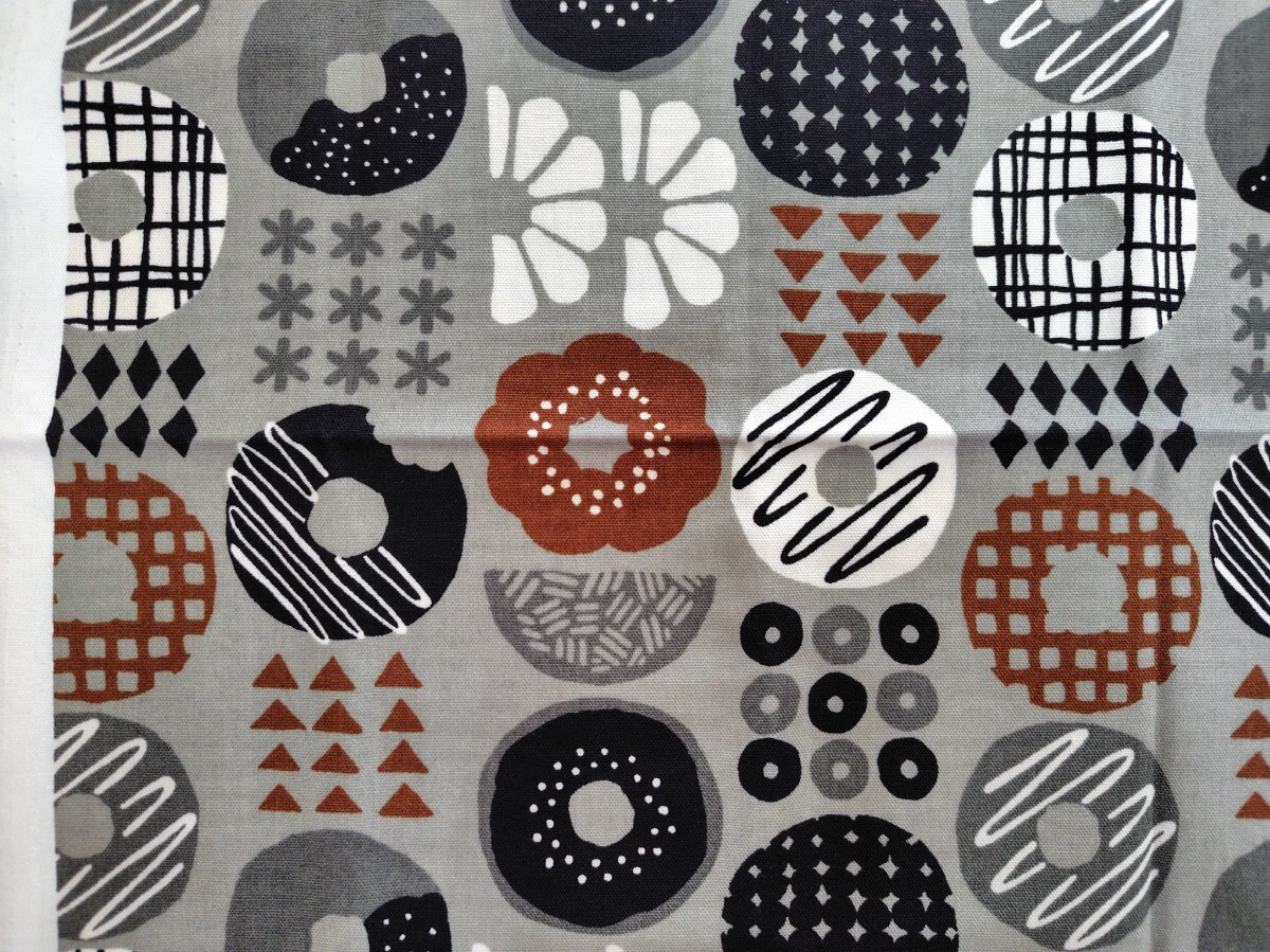 柄はグレー地にたくさんの美味しそうなドーナツ。