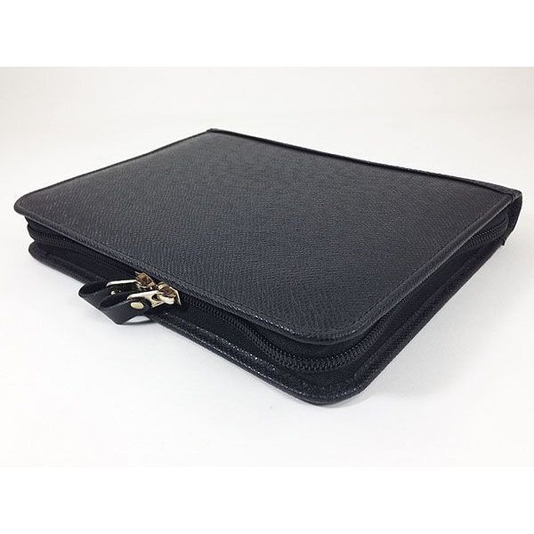 黒のカーフスキンで作られたエレガントな革ケースです。