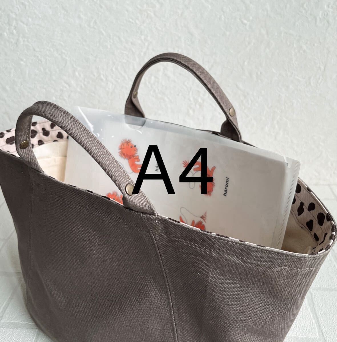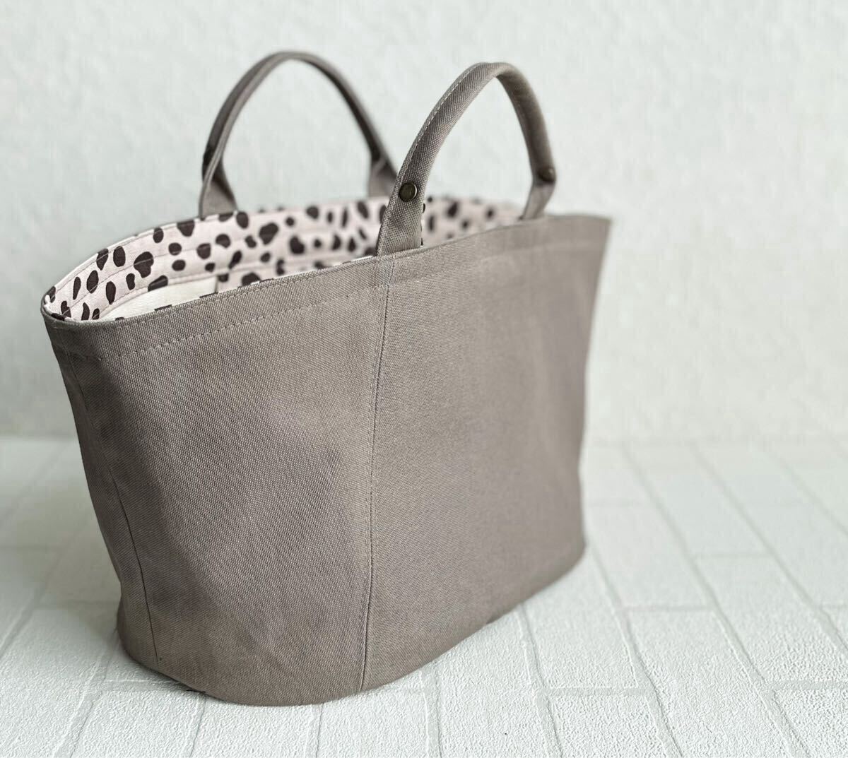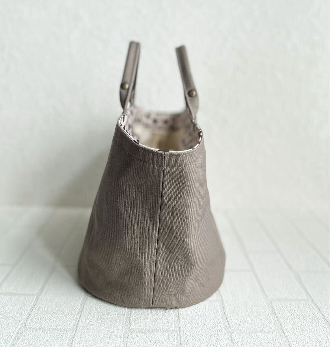 *他に出品している同じ形のバッグでも使っている素材、接着芯によりサイズや風合いは多少異なります。