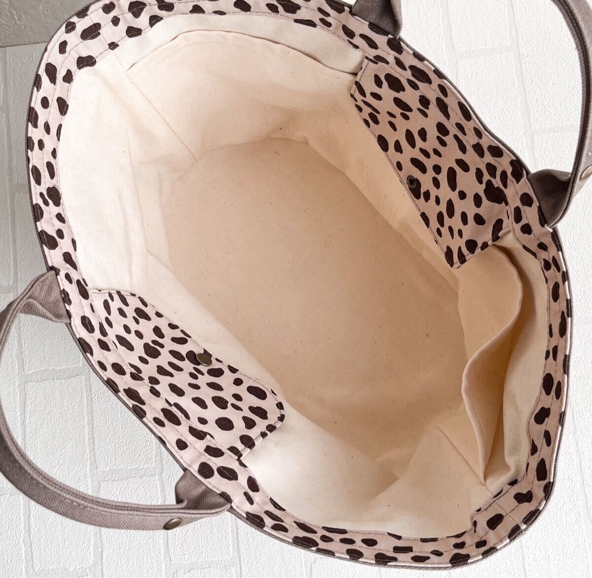 見返し、フタ部分:ダルメシアン柄11号帆布(コットン100)