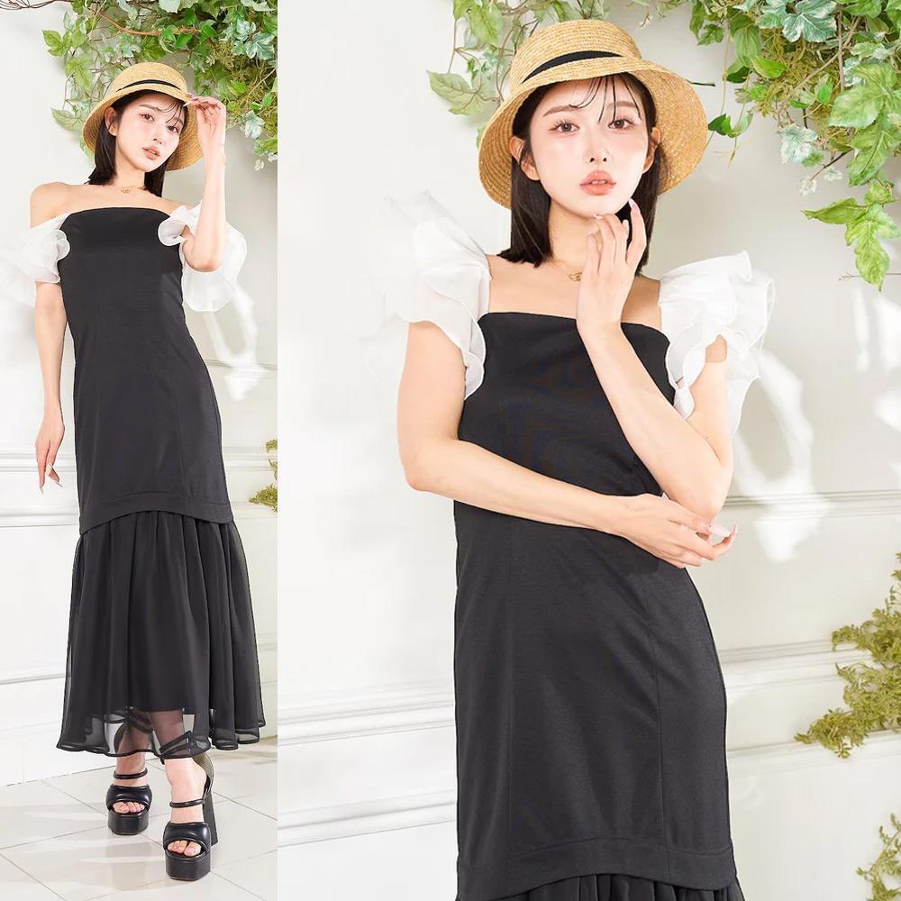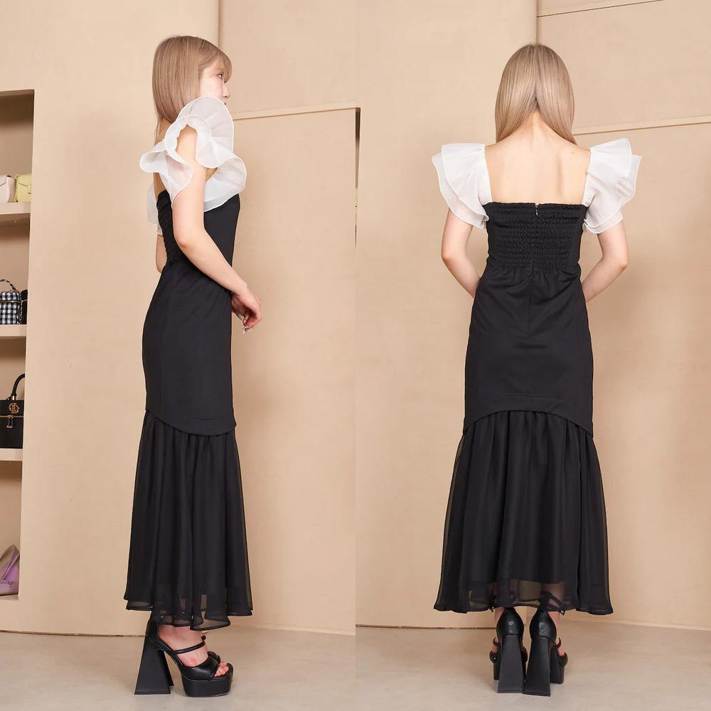 また肩のフリルは落としてオフショルダーとしても、落とさず着てもキマる2WAY仕様となっているので、シチュエーションによって様々な着方を楽しんでいただくのもおすすめです♪