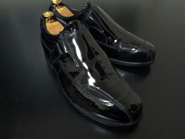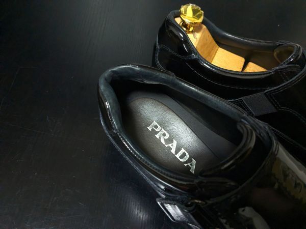 プラダ 6.5 PRADA パテントレザー ストラップ ドレススニカー 黒 501