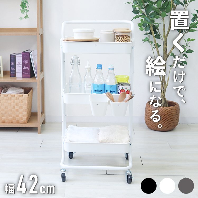 \お部屋に置くだけで絵になる収納ラック/ おしゃれなバスケットトローリーは、“見せる収納”としても大人気のアイテムです。 場所を選ばないシンプルでスタイリッシュなデザイン♪ 落ち着いたカラーで、インテリアになじみます。 ◆おすすめポイント◆ ・取り外し可能なハンドル付き ハンドルがついているお陰で移動も便利に♪ 移動だけではなく、ハンドル部分にタオルもかけられます! 不要な時はすぐに取り外せる所がポイントです! ・小物入れ・フックが付属で付いてきます! 取り外せる小物入れが2つ、L字セットが4つ付いてきます♪ 物をかけたり入れたりできる便利アイテムです! ・通気性抜群なワゴンの底面 かわいい花柄のメッシュデザインを採用しており、通気性だけでなく見た目もオシャレにこだわりました! ポリプロピレン製なので、サビる心配もなく楽々お掃除できちゃいます! ~使い方によって段階を調整できます~ 上段のトレーとパイプを外すことで2段としても使うことができます♪ 子ども用の収納ラックや、机下の収納用など幅広く活用できます! 【商品仕様】 ・カラー:ホワイト ・サイズ:(約)幅42cm×奥行39.5cm×高さ89cm ・重量:(約)2.8kg ・耐荷重:(約)30kg ・材質:ポリプロピレン、炭素鋼、密度ボード 【注意事項】 ・パイプ同士を接合する際に指を挟まないよう注意してください。 ・付属のネジやナットは数が余る場合がございます。 ・設置した際にガタつく場合は、キャスターのナットの位置を変え高さを調整してください。 ・製造工程や輸送中に多少の傷などがある場合がございます。こちらは返品対象となりませんので、予めご了承ください。 ・商品は、モニターによって色合いが異なって見える場合があります。 ・仕様・デザインは改良のため予告なく変更することがあります。 |