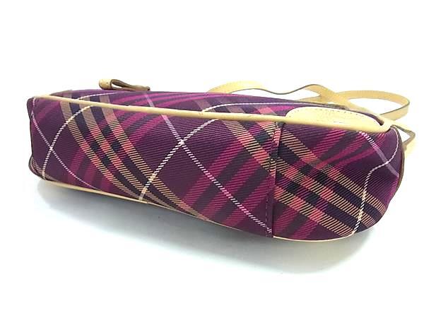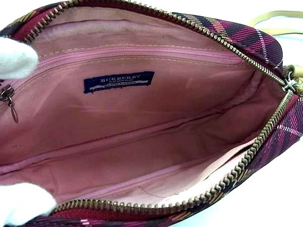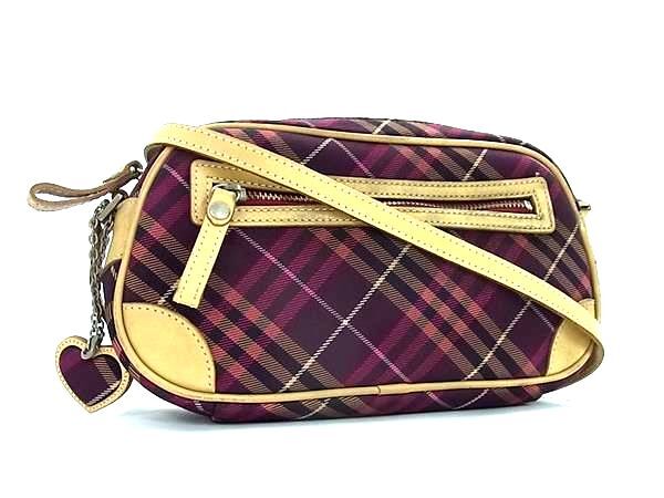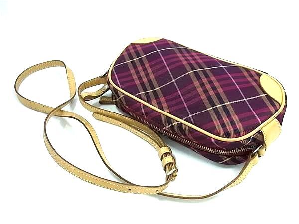1円 BURBERRY バーバリー キャンバス×レザー チェック柄 クロスボディ ショルダーバッグ 斜め掛けかばん ワインレッド系 FP7880