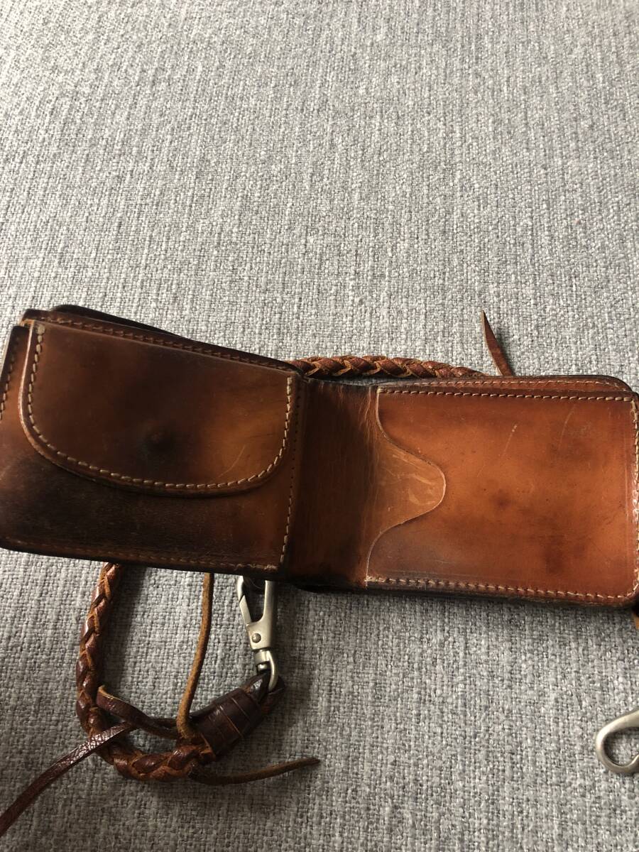 主にバイクに乗るシーンで使用していましたが、ほとんどの人達が長財布をケツポケットから出っ張らしているので、違うパターンを求めてあえて私は嫌味なく隠して装着できるようこのタイプをチョイスして育ててきましま。