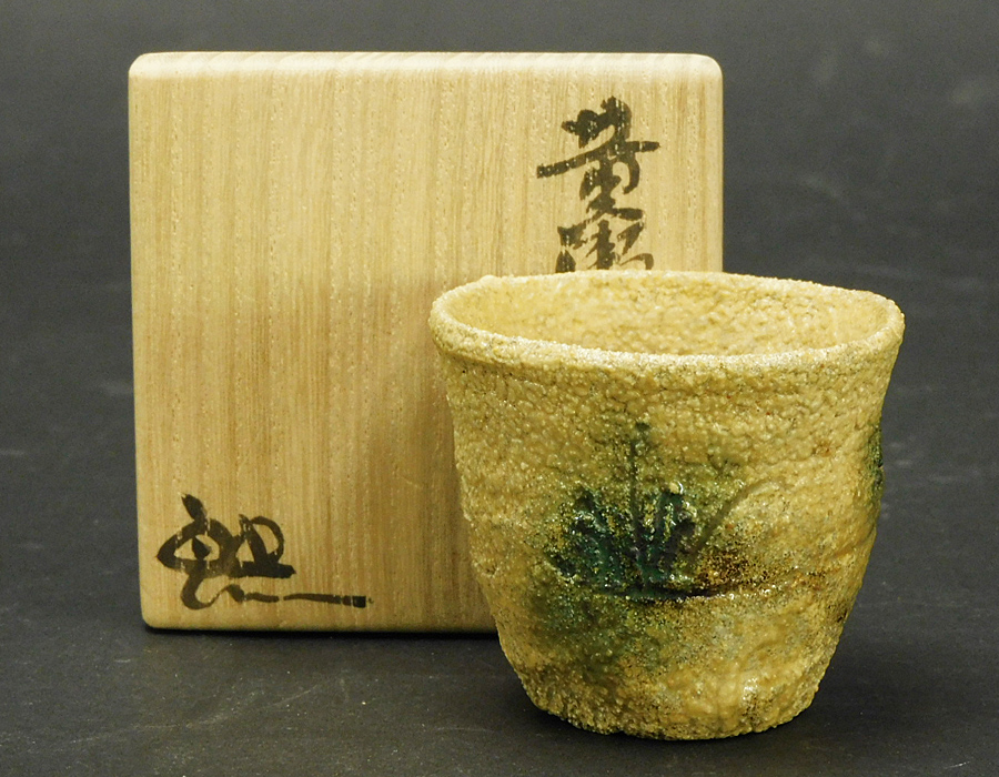 鈴木五郎 黄瀬戸 ぐい呑み(酒杯 酒盃 酒呑)共箱 酒器 保管品 s25100203