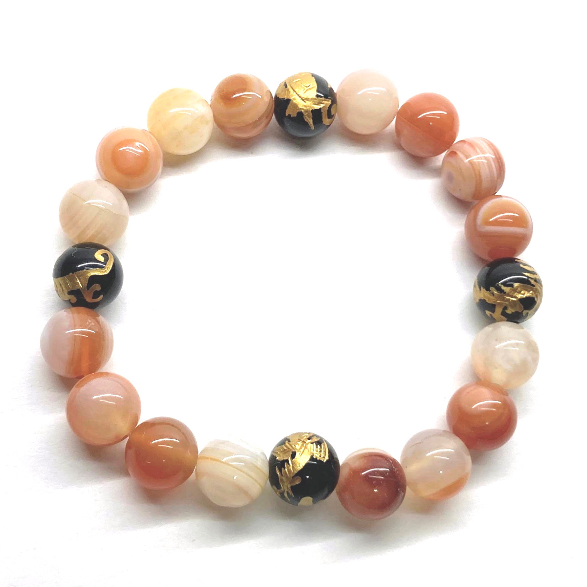 10mm 四神獣金彫オニキス×カーネリアン・サードニクス パワーストーン ブレスレット天然石 開運 青龍 白虎 玄武 朱雀 ☆