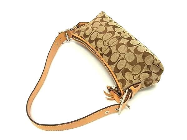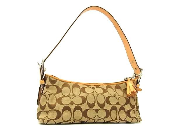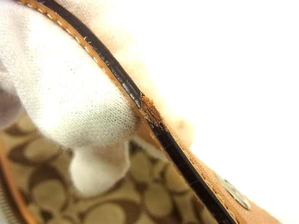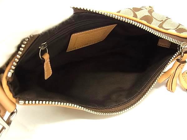 1円 ■美品■ COACH コーチ 6371 シグネチャー キャンバス×レザー ショルダーバッグ アクセサリーポーチ レディース ブラウン系 FP7502