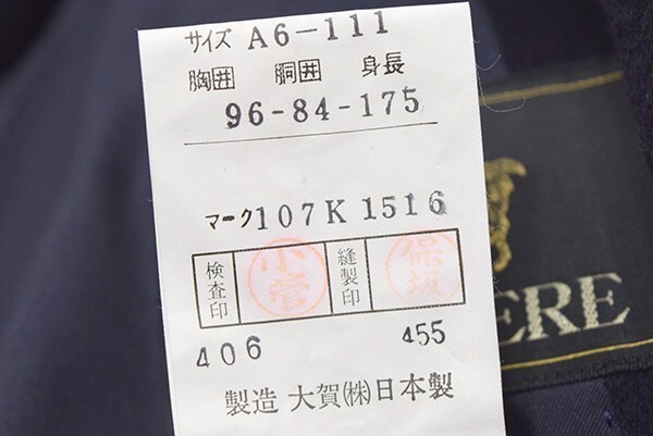| サイズ | 表記サイズ:A6-111 胸囲:96cm 胴囲:84cm 身長:175cm (実寸) 身幅:59cm 袖~脇下:40cm 着丈:111cm 裄丈:84cm |
