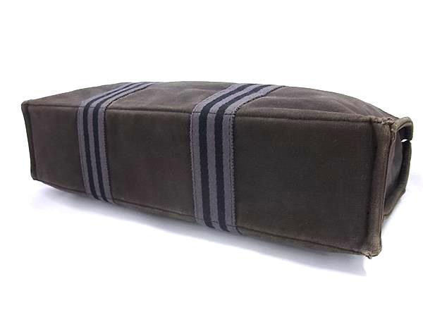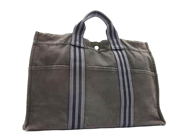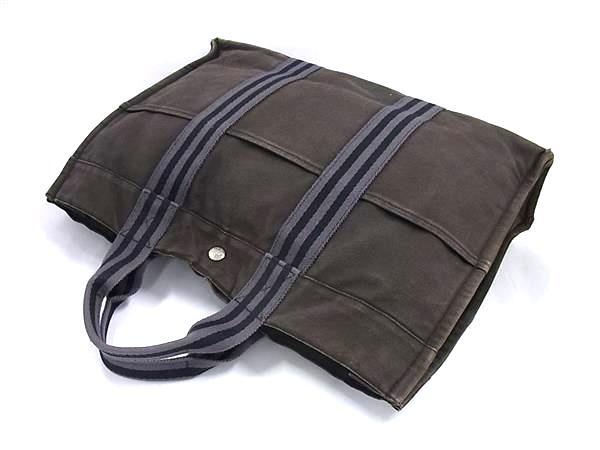 1円 HERMES エルメス フールトゥMM キャンバス シルバ ー金具ハンドバッグ トートバッグ メンズ レディース ダークブラウン系 GB1881