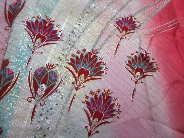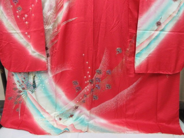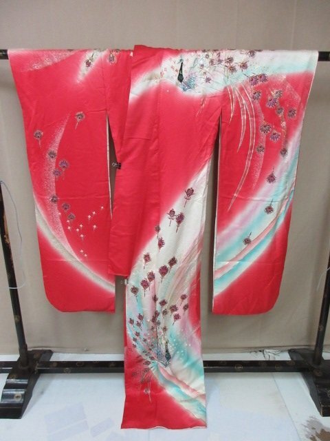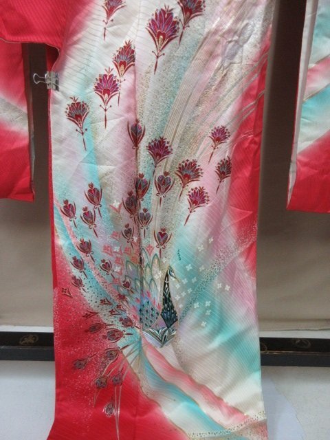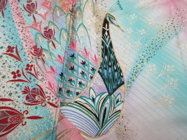 商品名 | 1円 中古 振袖 正絹 着物 縮緬 和装 卒業式 入学式 式典 道長 孔雀 草花 袷 身丈168cm 裄68cm【夢職】★ |