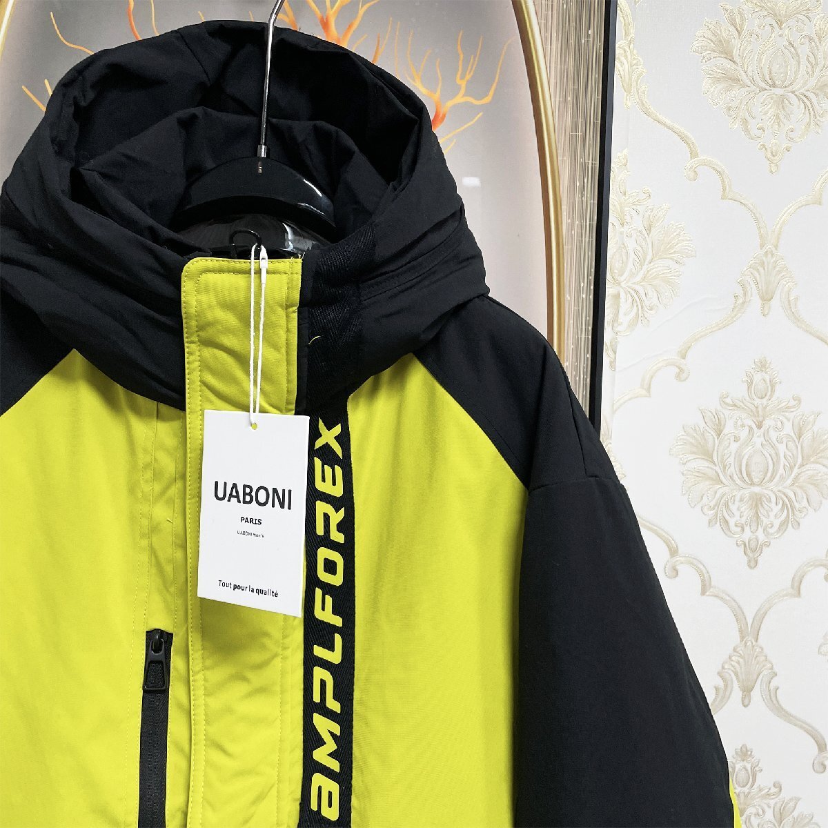 最上級 EU製&定価10万◆UABONI*Paris*ダウンジャケット*ユアボニ*パリ発◆防寒 防風 個性 切替 フード付き ストリート アウター 冬 2XL/52サイズ