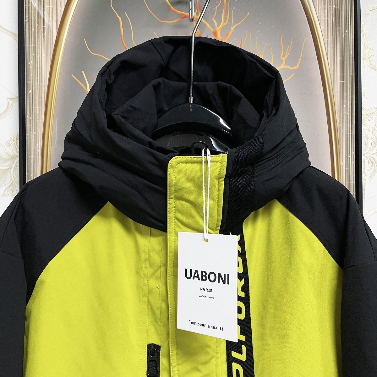 最上級 EU製&定価10万◆UABONI*Paris*ダウンジャケット*ユアボニ*パリ発◆防寒 防風 個性 切替 フード付き ストリート アウター 冬 2XL/52