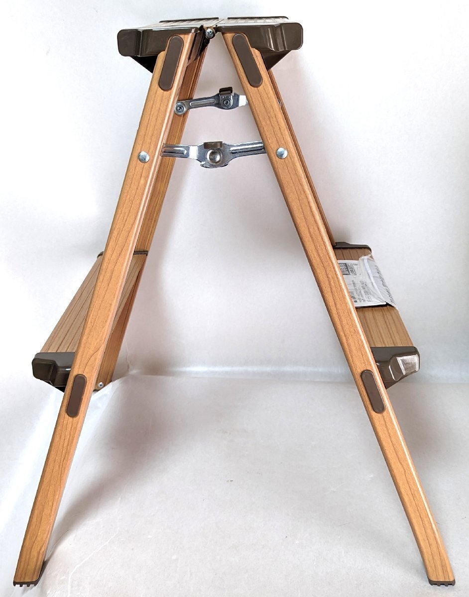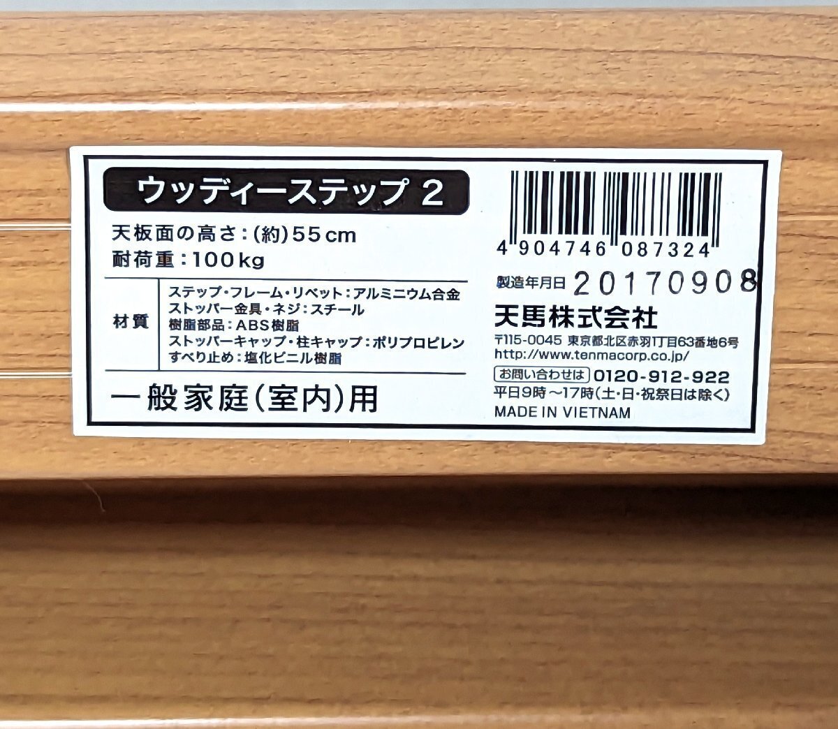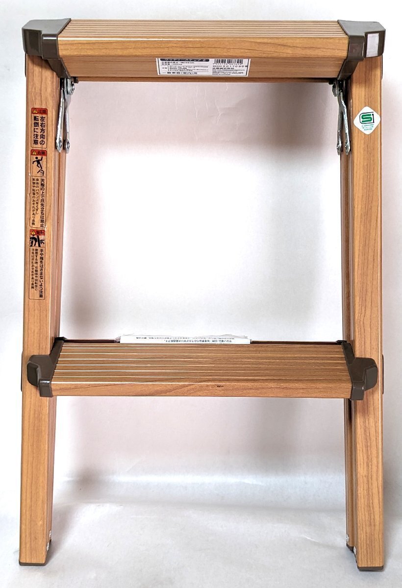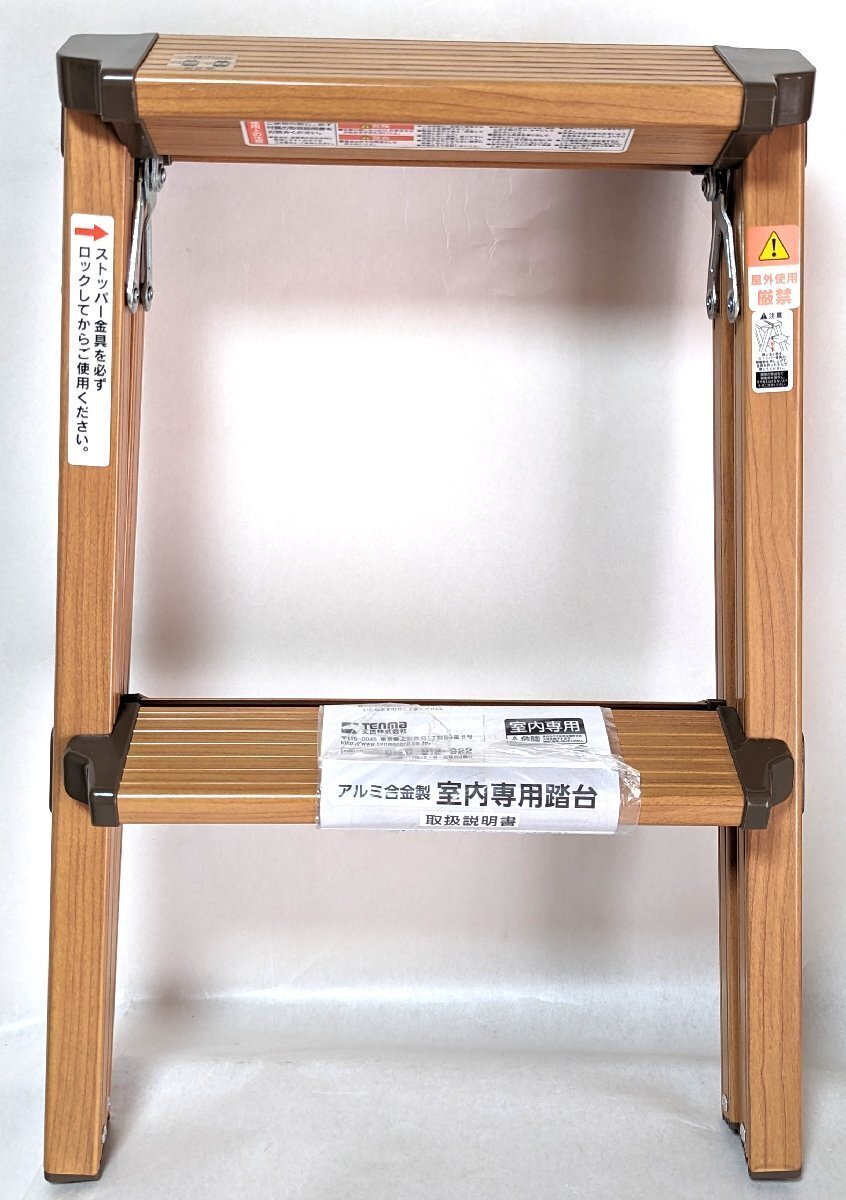 ★未使用★ TENMA 室内専用踏台 ウッディーステップ2 脚立 踏み台 足場 アルミ合金製 コンパクト 木目 ブラウン 作業 点検 滑り止め