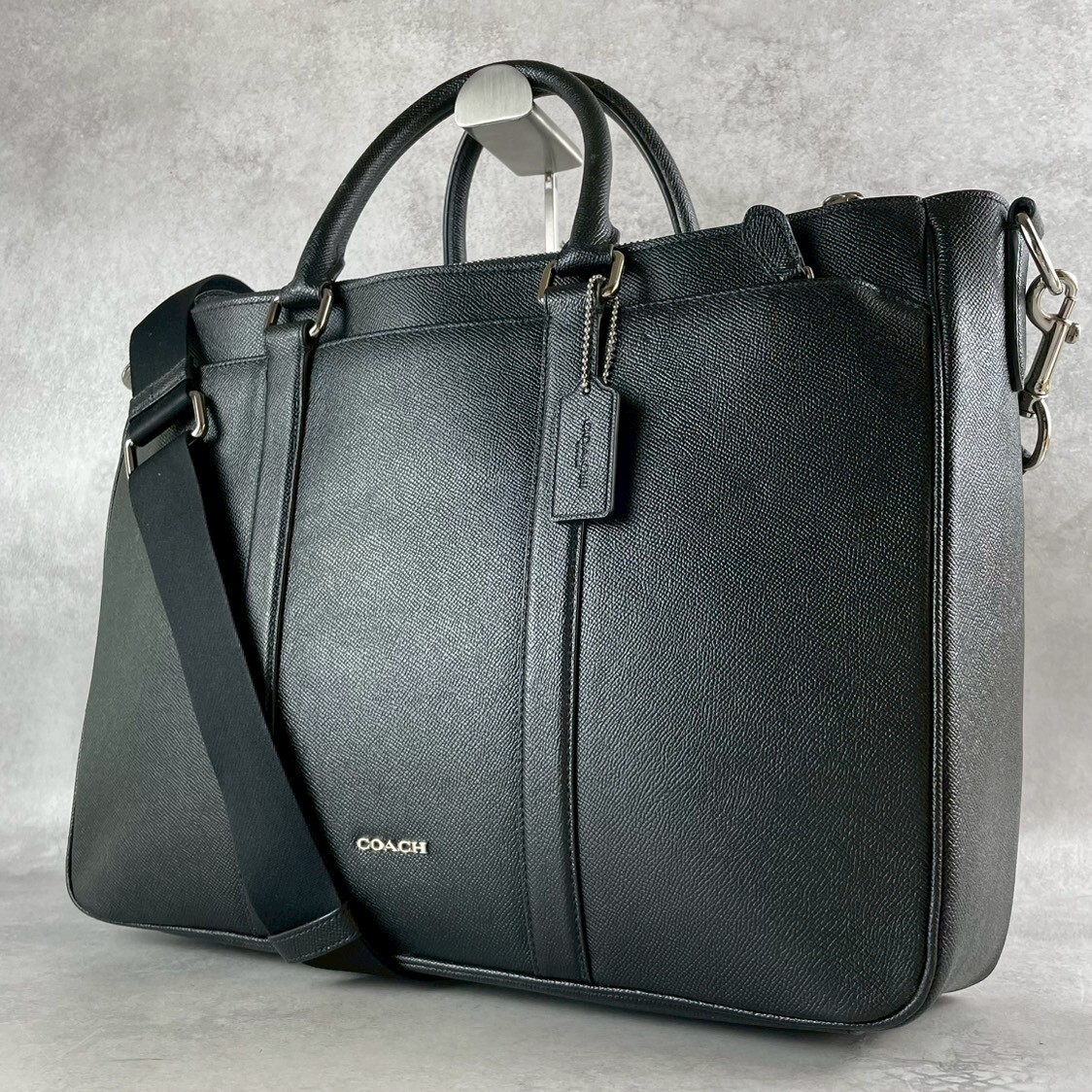 入手困難 極上 COACH コーチ 2way ビジネスバッグ ブリーフケース トート A4収納可能 肩掛け サフィアーノレザー 黒 ブラック メンズ