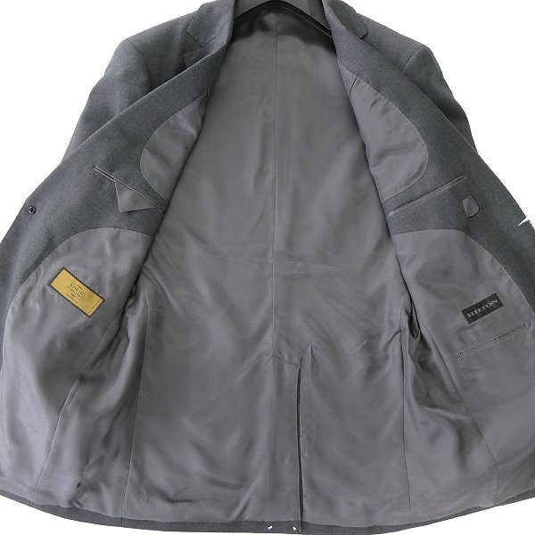 ※ハンガーは付属いたしません※ A7サイズ(標準体型のLLサイズ相当) 胸囲96 胴囲84 身長180 ウエスト86 ※写真は別サイズを使用している場合がございます※ ※商品に記載されたサイズ・寸法です※ 【ジャケット】 肩幅45cm 身幅53cm 袖丈63cm 着丈74cm 【スラックス】 ウエスト86cm(内回り1周) 股上25.5cm 股下94cm 裾幅20.3cm 腿幅30.5cm(股下10cm部分) 表地:毛100% 胴裏:キュプラ100% 袖裏:キュプラ100% 膝裏:ポリエステル100% グレー |