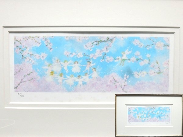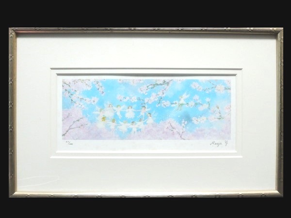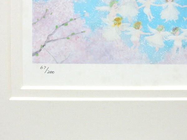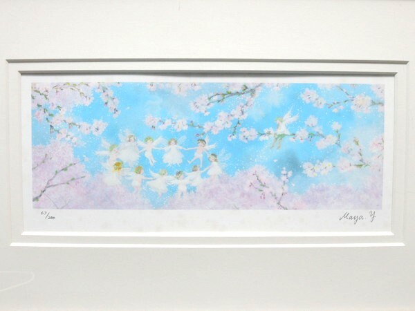 真作/横山真弥/「桜さくら 天使たちのダンス」/アーカイバルプリント/額装品/変形4号/直筆サイン入り/ 67/200 /作家物/メルヘン人気作家
