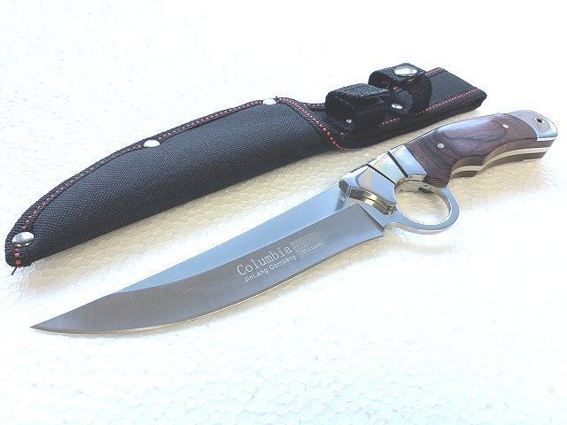 ★Columbia Saber★コロンビアナイフのサバイバルナイフ。全体的に精度の高い仕上がりとなっております。ハンドルはステンレスと天然ウッドのコンビパターン。大きめのフィンガーホールが特徴的な一本。