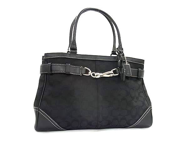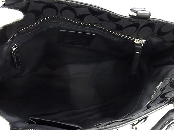 1円 ■美品■ COACH コーチ 8K07 シグネチャー キャンバス×レザー ハンドバッグ トート ショルダー 肩掛け レディース ブラック系 FU2424