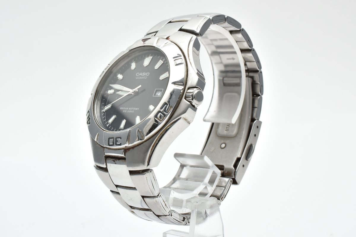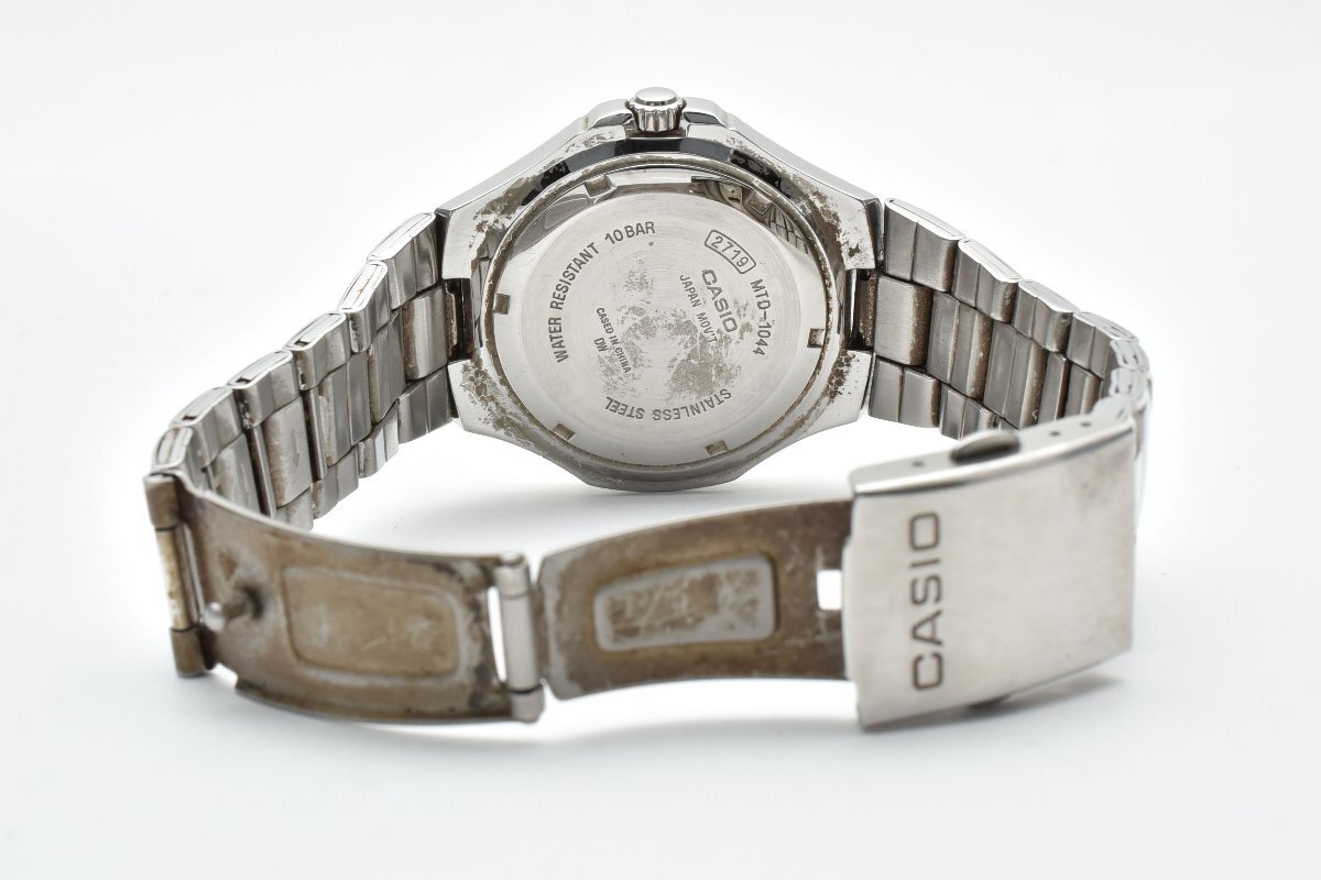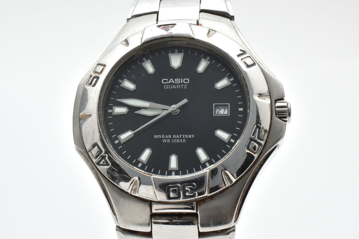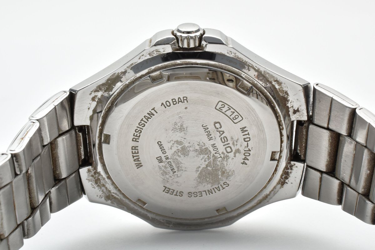 CASIO QUARTZ カシオ クォーツ ラウンド 腕時計 メンズ 3針 デイト ブラック シルバー MTD-1044