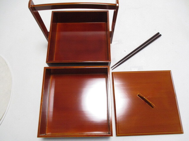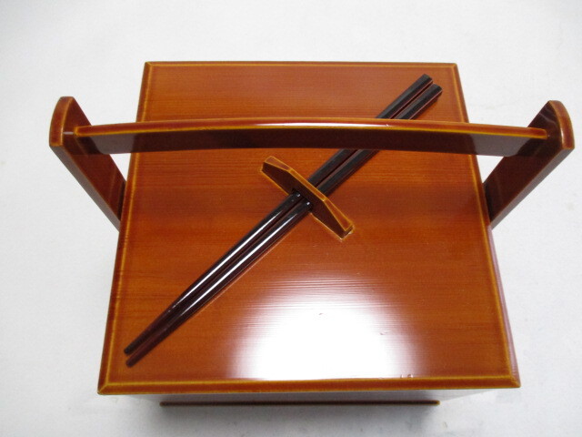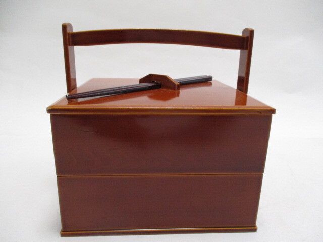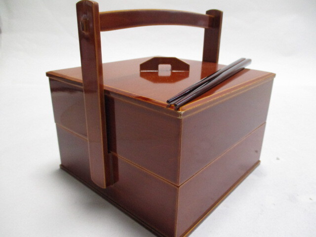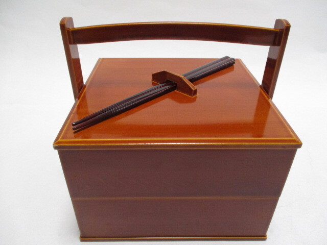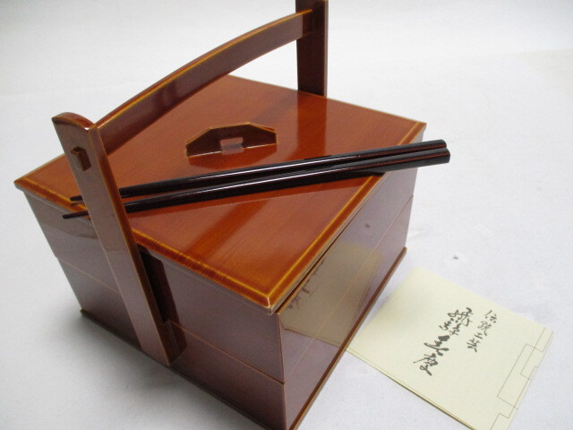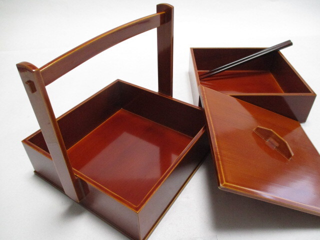 漆器 飛騨春慶塗 手付き二段重 16.8cm 箸付き 天然木  漆塗装 春慶塗 春慶 段重