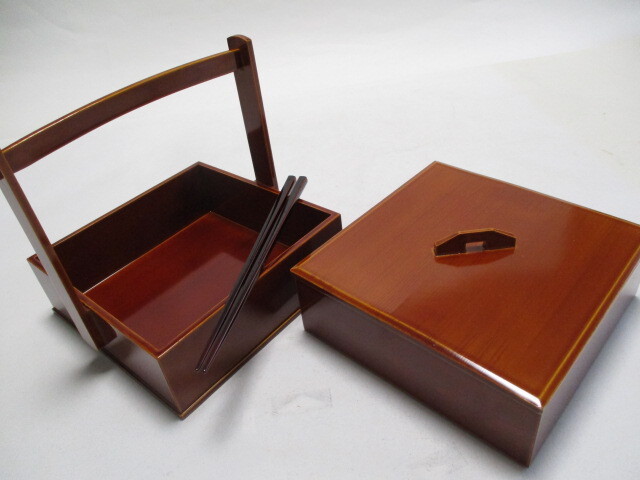 サイズは16.8x高さ11cm(蓋込み 手付き高さは17.5cm ) 箸 19cm 天然木 漆塗装